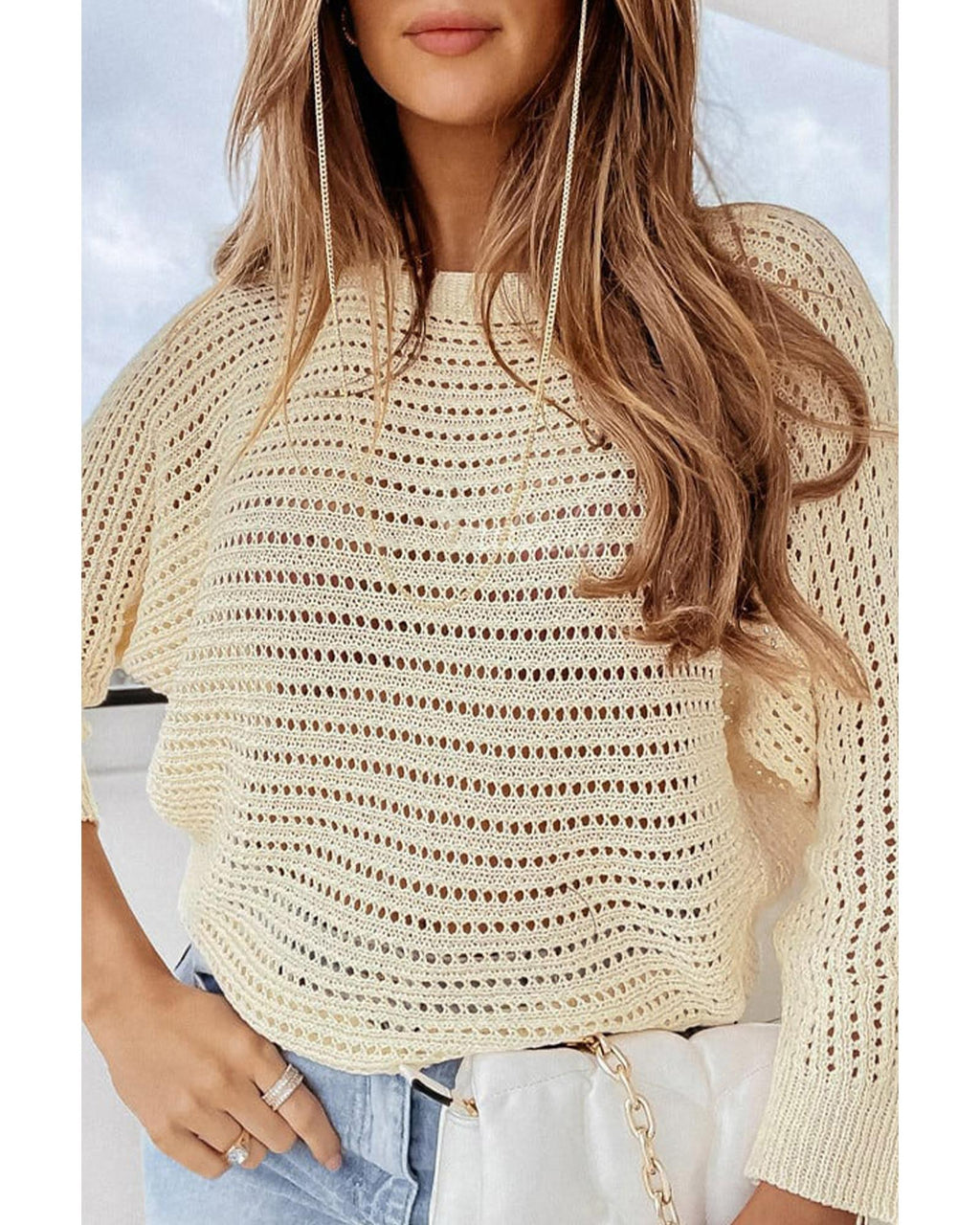 Apricot Open Knit Bracelet Sleeve Sweater - M