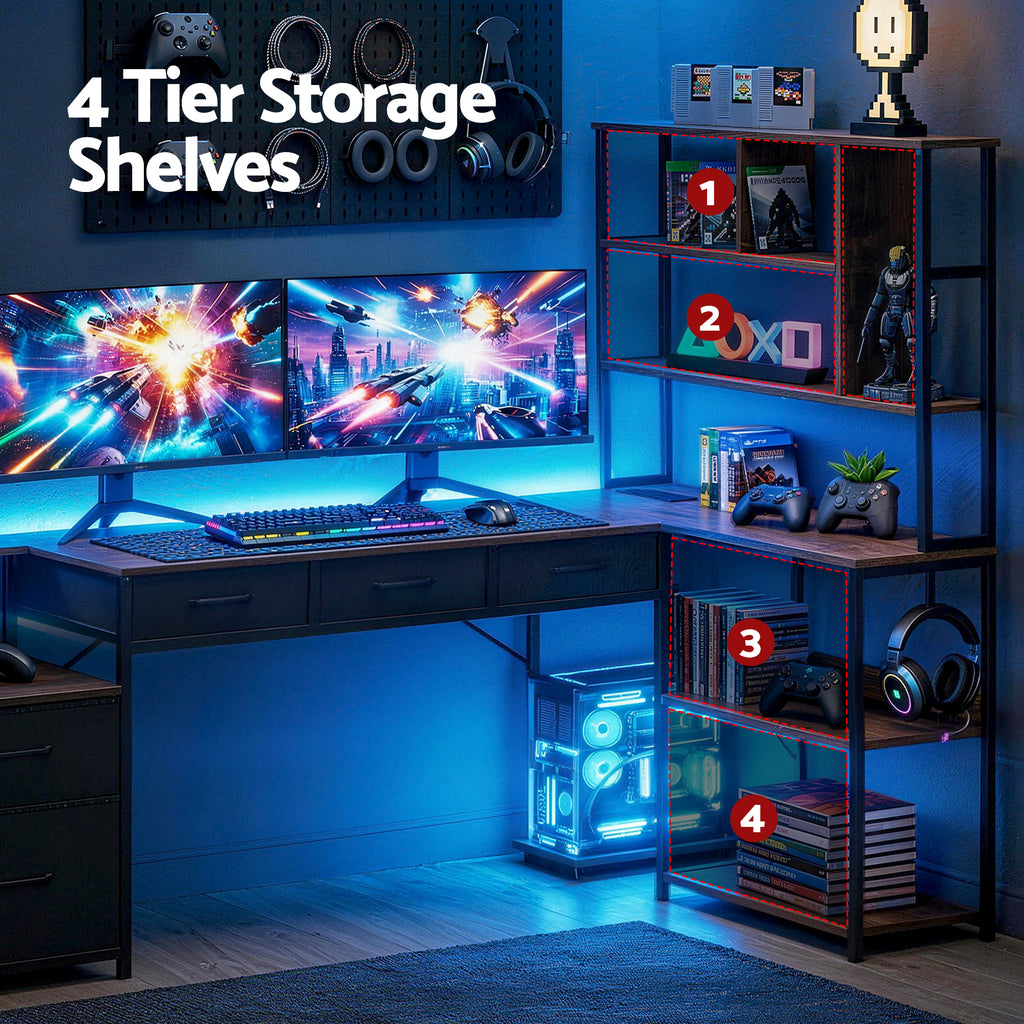 Weight Capacity: Desktop: 25kg; Shelves: 10kg; Drawers: 5kg per unit
