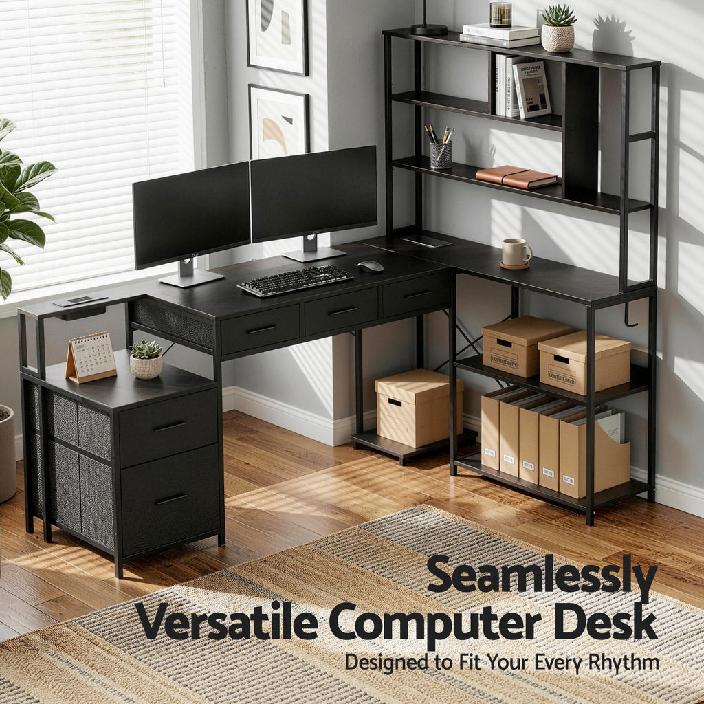 Organized Storage: Three lightweight fabric drawers offer ample room for documents, cables, and accessories.