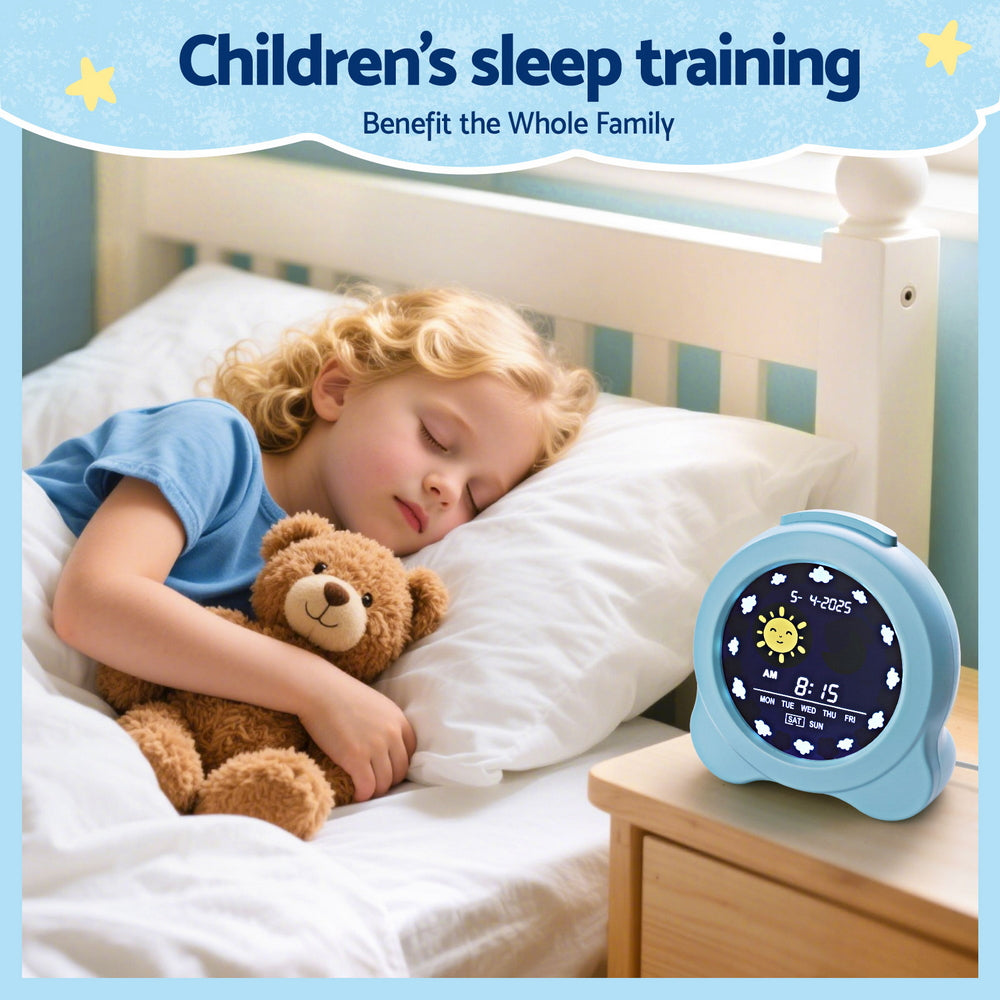 Empower your child's sleep independence with the Artiss Digital Day Clock. Its dual-alarm system lets parents set different wake times for weekdays and weekends, while 6 gentle nature sounds (like Seagull and frog) provide calm morning transitions. The automatic day/night display teaches time awareness: cheerful sun icons for active hours, soothing star patterns for bedtime. With 4 adjustable brightness levels, it doubles as a comforting night light, and the oversized 3.8-inch screen helps young readers track time easily. Snooze function teaches responsibility - perfect for transitioning from crib to big-kid beds!