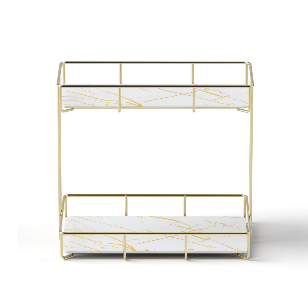 Artiss Bathroom Storage Rack 2 Tier Corner Organiser Gold Marble Look