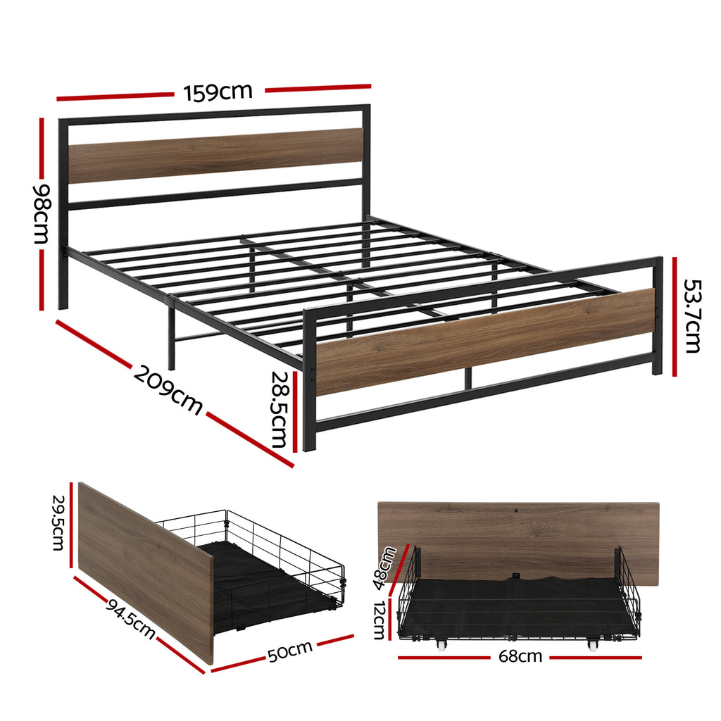 Artiss Bed Frame Queen Size Metal Frame with 2 Drawers DREW