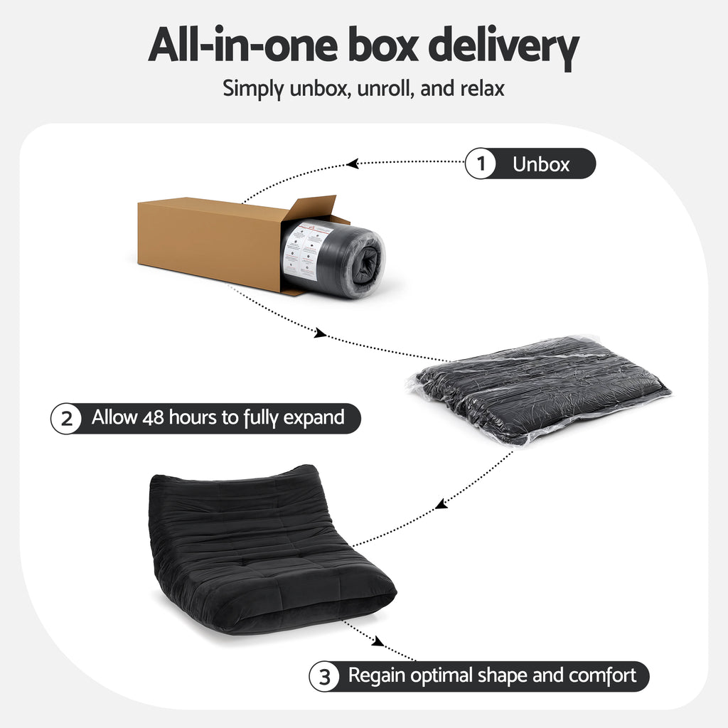 Relax and unwind after a long day with the Artiss 2-seater Lazy Sofa Chair. This is more than just a seat—it's your personal invitation to contemplation and comfort. Imagine sinking into the premium soft velvet fabric and the distinctive quilted caterpillar design, feeling your body fully supported by the high resilience foam filling. Stock up on your favourite snacks, invite your friends over, and recline in comfort on this stylish 2-seater. Whether you're watching the game, playing a board game, or simply enjoying a relaxing chat, this sofa is the perfect centerpiece for shared moments. Its lack of a rigid frame and lightweight design mean you can easily carry and move your 2-seater couch around the house to perfectly fit your preferences that day. Need some sun? Take it out to the deck! Need a cosy corner? Move it into your room! And because accidents happen, its durable nature allows for easy spot cleaning as soon as a stain occurs, keeping your relaxation haven pristine. Beyond the living room, this sofa can even double as a super comfy floor office chair for relaxed working or reading a book—making it the ultimate versatile piece for your modern lifestyle.