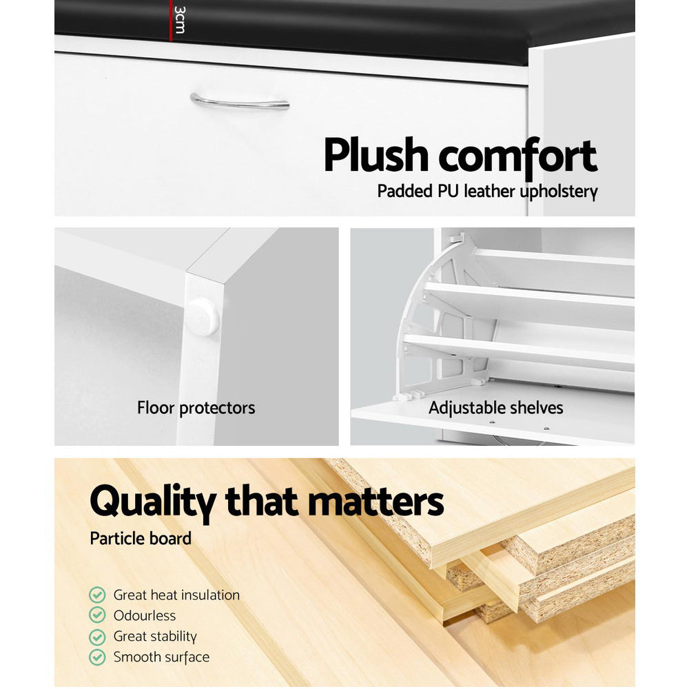 Artiss Shoe Cabinet Bench Shoes Storage Rack Organiser Drawer White 15 Pairs