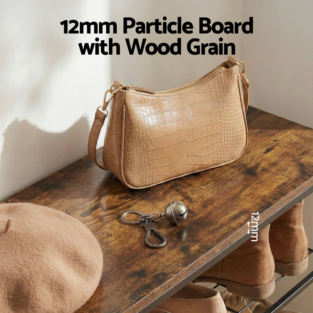 The industrial-style Artiss Bob Shoe Rack will help you keep the home neat and tidy without compromising on style. With its sturdy quality metal frame and smooth, clean surface, you can trust the shoe rack to keep your daily essentials at hand. The tabletop features a dark, natural wood grain colour that will blend in with most interior styles. Five tiers of open shelves give you plenty of room for essentials, while gaps along each shelf encourage proper airflow to prevent dampness, mould and mildew. The rack can store up to 15 pairs of shoes to keep the whole family organized. With simple assembly instructions, your hallways will be clutter-free in no time. Get yourself an Artiss Bob Shoe Rack and never lose your shoes at home again.