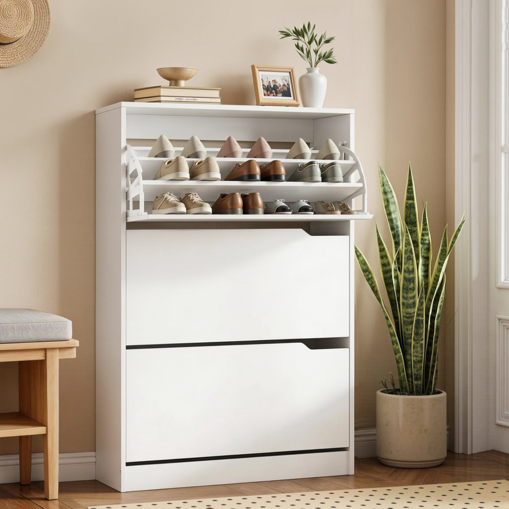 Artiss Shoe Rack Cabinet 24 Pairs Adjustable Shelf White