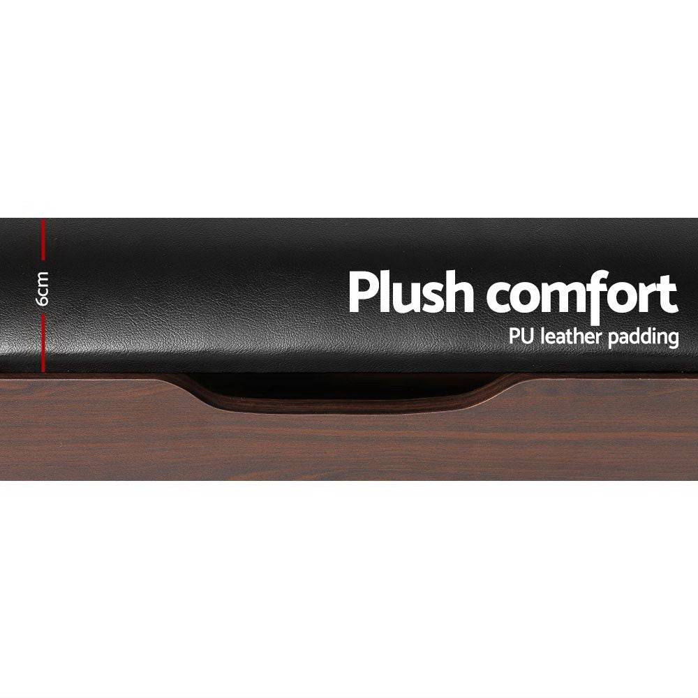 Get yourself a shoe cabinet with an aesthetic difference. Our Artiss Shoe Cabinet Bench adds a touch of luxury and multi-functionality to the ubiquitous shoe cabinet. On first impression, it looks just like a plush PU leather stool. Pull down the front panel and you find three tiers of adjustable shoe shelves with ample space for up to 15 pairs of various footwear. There is also a closed storage compartment hidden under the seat, with cut-out handles for easy opening. Made from quality particle board, the bench is sturdy and finished in melamine for durability and easy maintenance. Not least, its thoughtful design means that you can place it in your hallway or entrance for a neat and tidy look that blends seamlessly with your home decor. So remove the clutter and get organised with our shoe cabinet bench. We are sure it will fit right in with your discerning taste for all things stylish and chic.