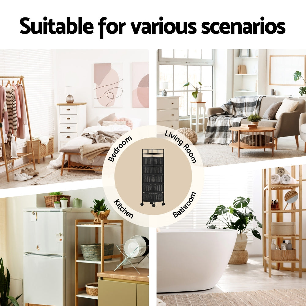 For convenient and portable storage, few can beat the classic Artiss Storage Trolley. With five tiers of deep trays, the trolley has a high storage capacity that is ideal for your craft room, kitchen, home office or playroom. Constructed with a steel frame, the unit is strong and stable whilst remaining lightweight and portable. Four smooth rolling wheels help you maneuver the trolley around the home, while two lockable wheels keep it in place. Thanks to its small footprint and vertical design, the trolley takes up very little space, fitting nicely anywhere in the home. Easy to install and maintain, you'll love having your essentials always at hand with the Artiss Storage Trolley.