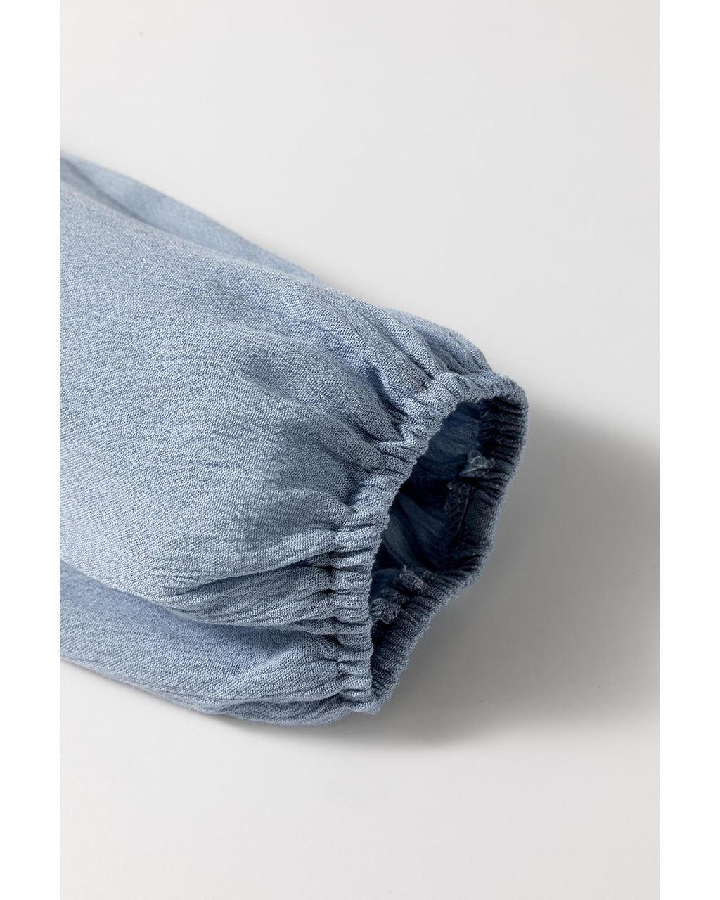 Ashleigh Blue Long Sleeve V Neck Smocked Tiered Mini Dress - S