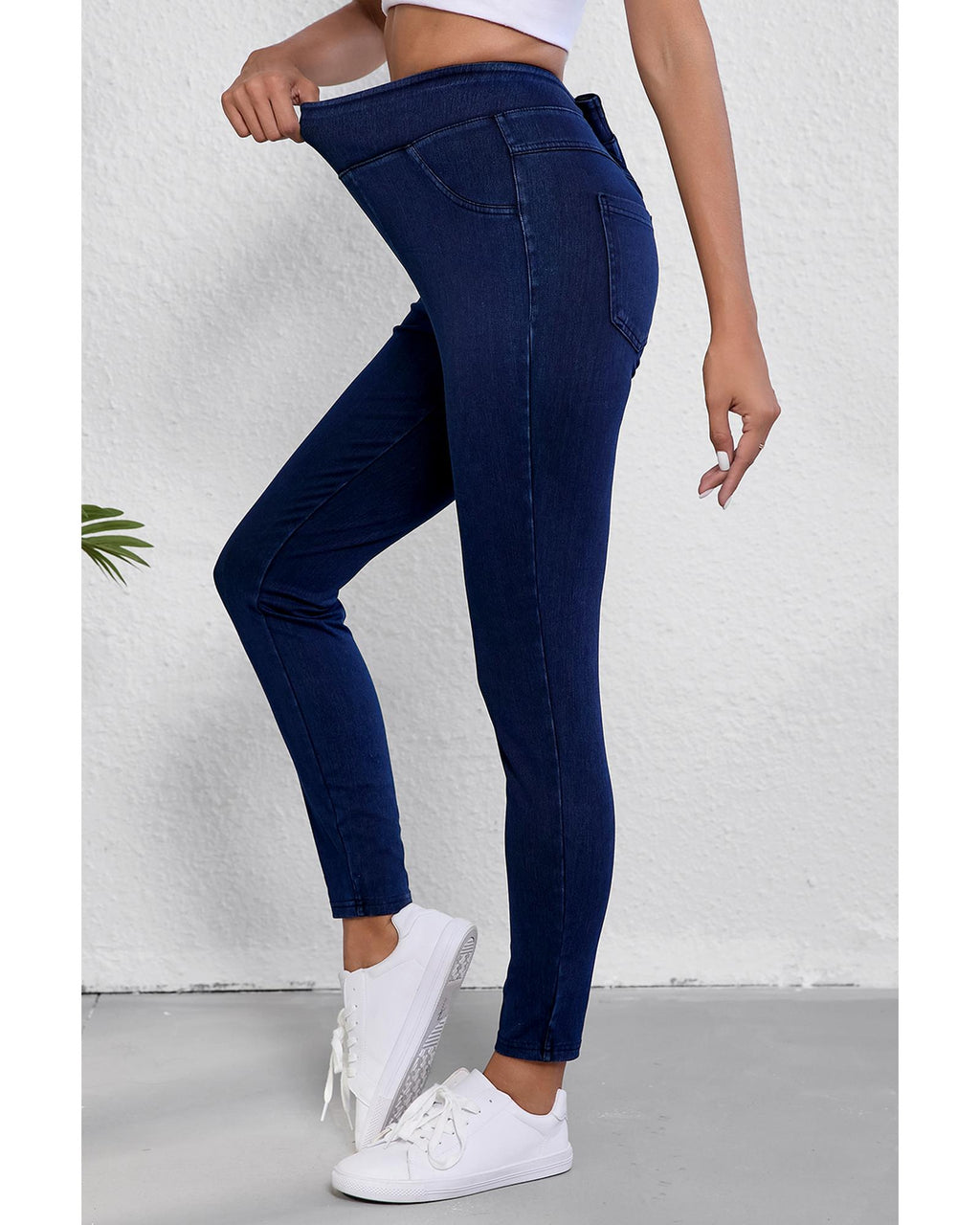 Ashleigh Blue Solid Color High Waist Stretchy Slim Fit Jeggings - L