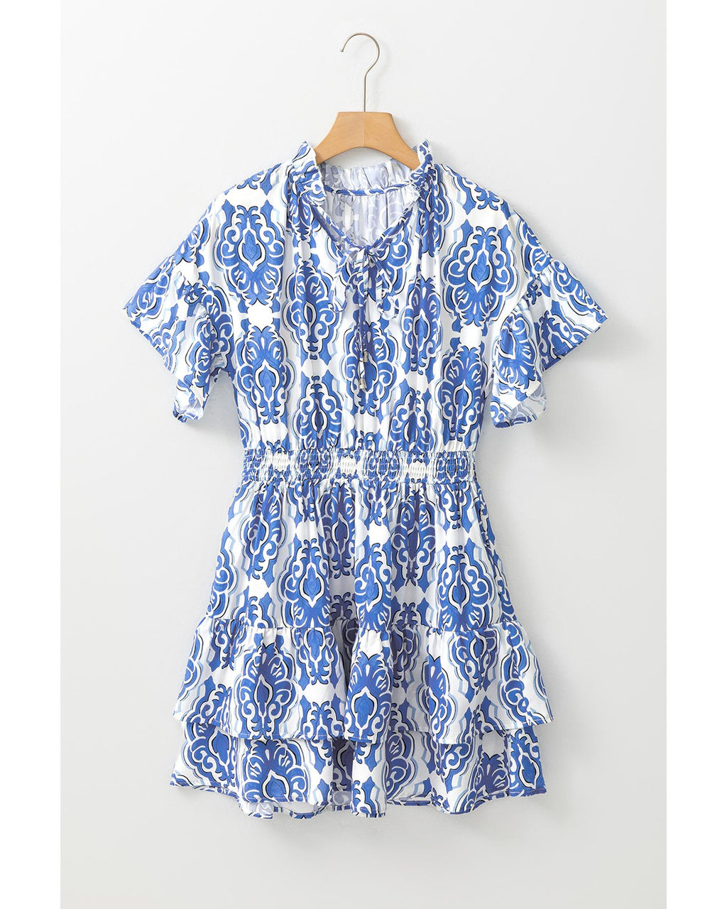 Ashleigh Blue Vintage Floral Print Wide Ruffled Sleeve Dress - L