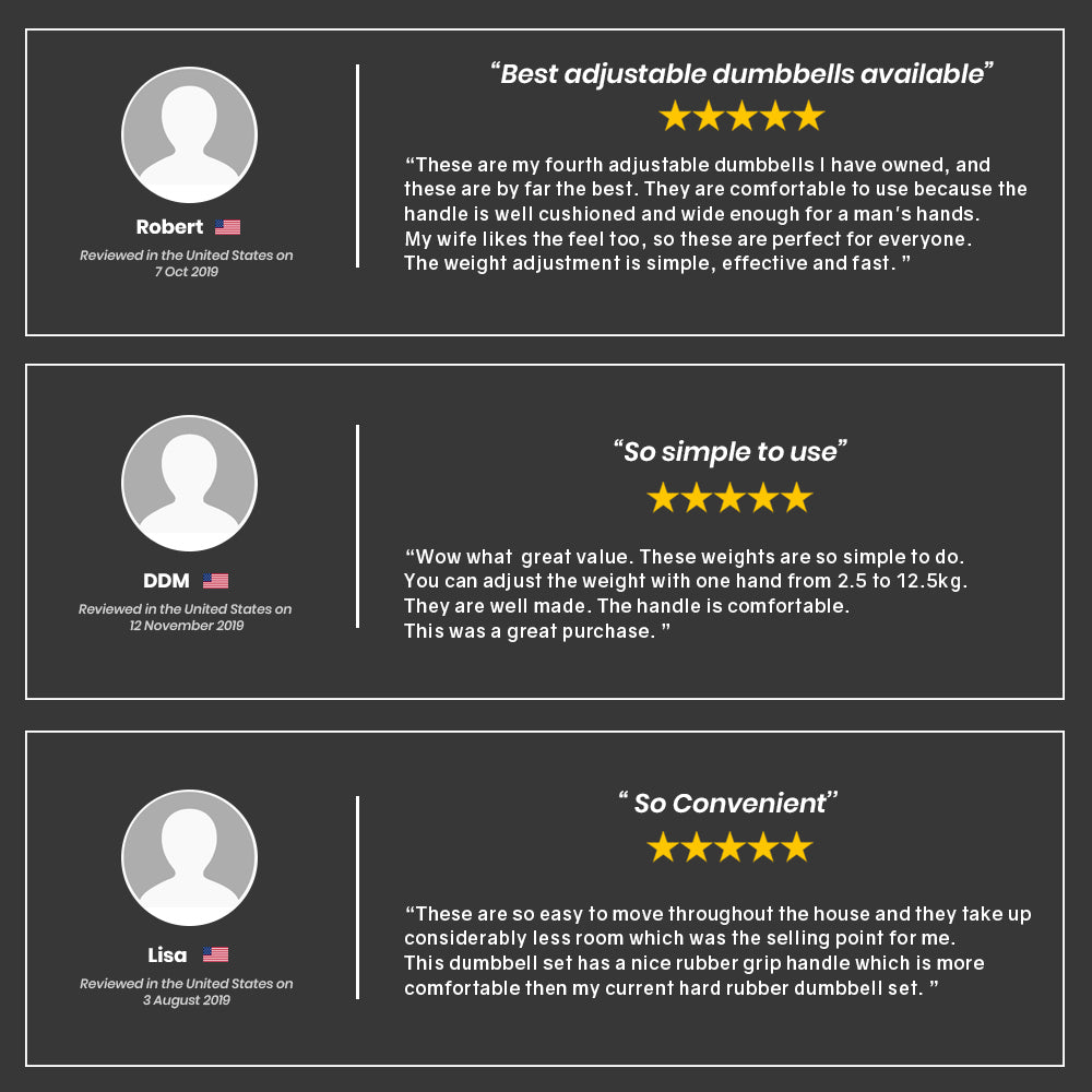 Giving you the versatility of 5 sets of standard dumbbells, your Ativafit&reg, set saves you on the initial outlay cost as well as being much more compact to store! With superior design and build quality, it should come as no surprise that Ativafit&reg, are leaders in the U.S. market. While other adjustable dumbbell models have a plastic locking system, Ativafit&reg, utilises a secure high-tensile steel design.