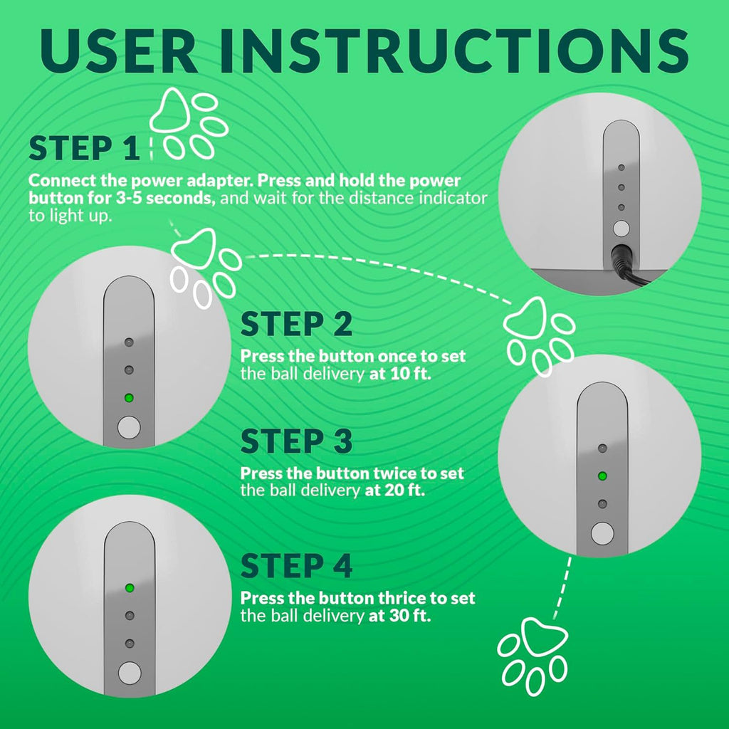 This product uses batteries for operation (batteries not included). Supervise your pet during use to ensure safe play. Do not aim the launcher at your pet's face or eyes. The launcher is not a toy for children and should be used under adult supervision. Store in a dry place when not in use to maintain functionality. Balls are not included with this product; use with 2-inch diameter balls for best performance.