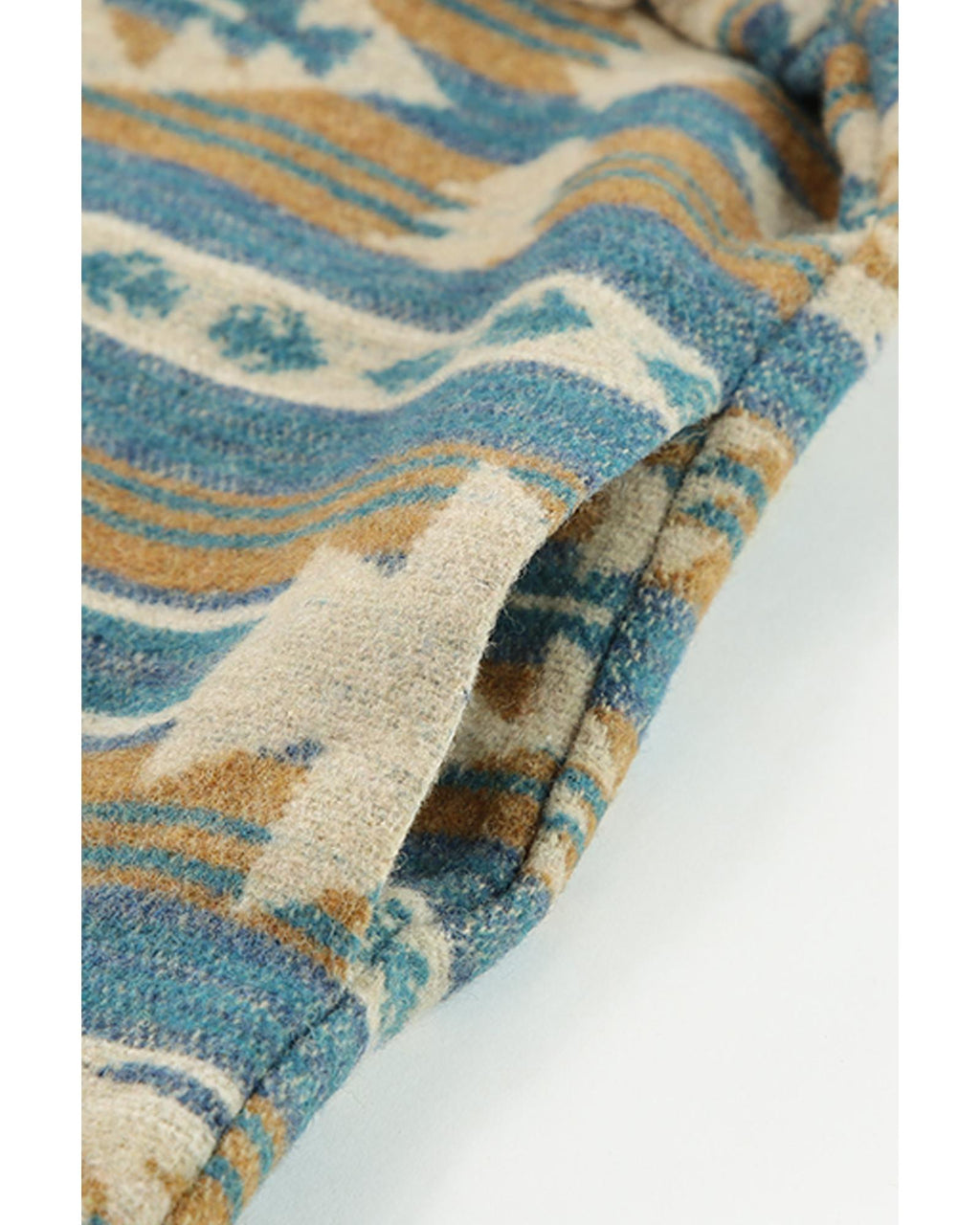 Azura Exchange Blue Western Aztec Print Button Flap Pocket Shacket - S