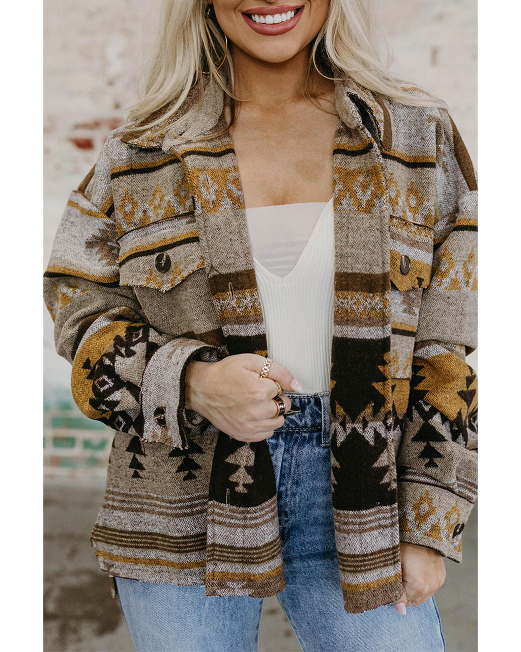 Azura Exchange Brown Western Aztec Print Jacket - L