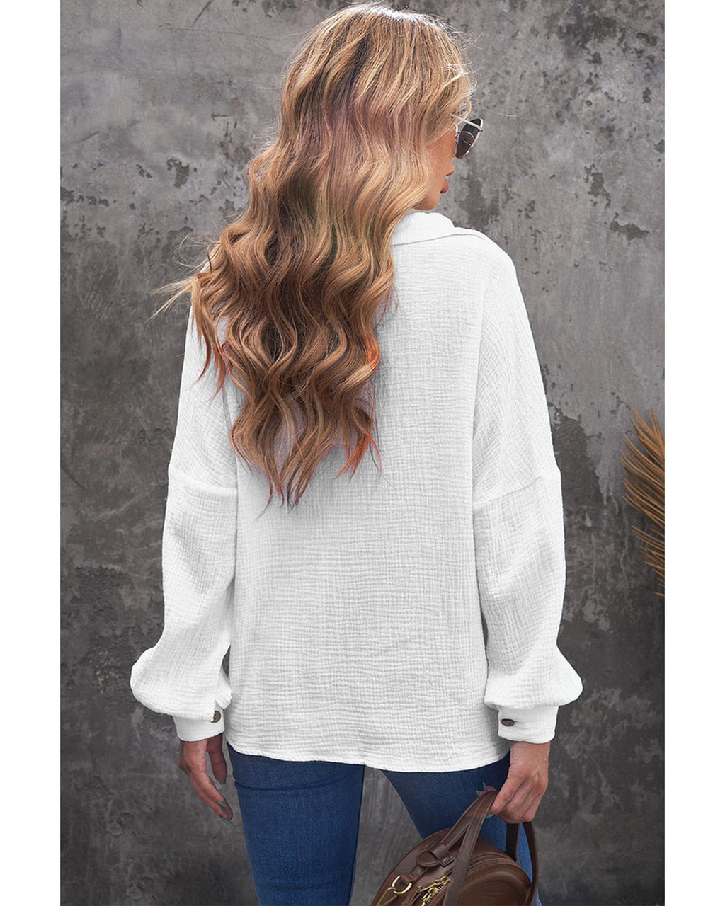 • Stylish and versatile Turn-down Collar V Neck Crinkled Cuffed Shirt