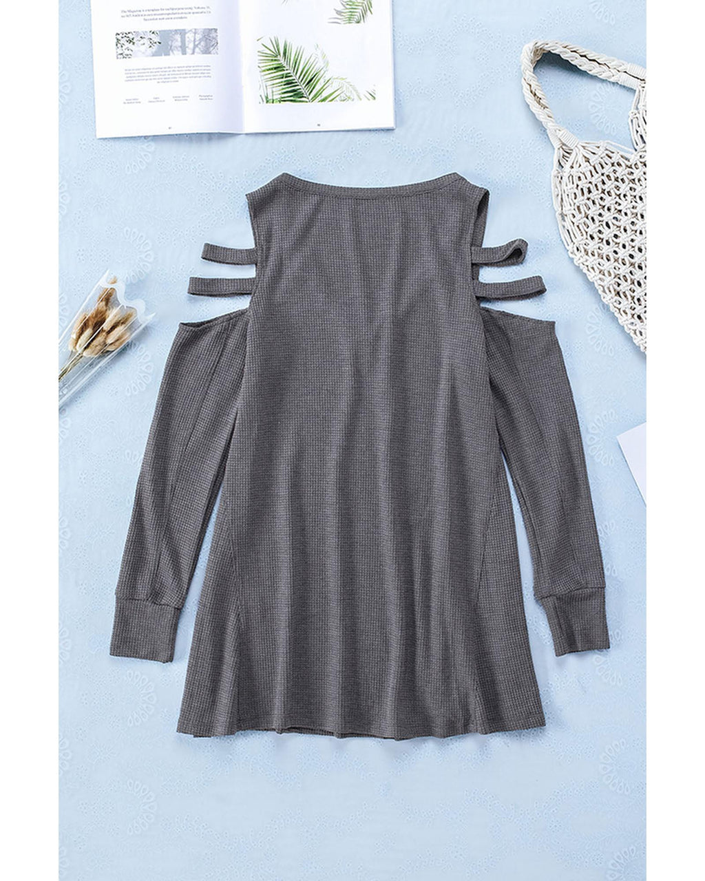 Azura Exchange Cut-out Waffle Knit Long Sleeve Top - L