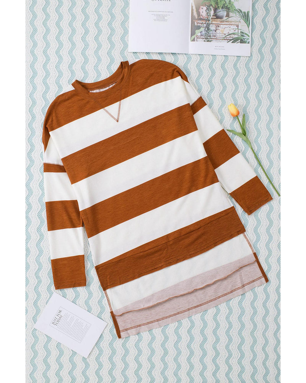 Azura Exchange Drop Shoulder Striped Sweatshirt - L