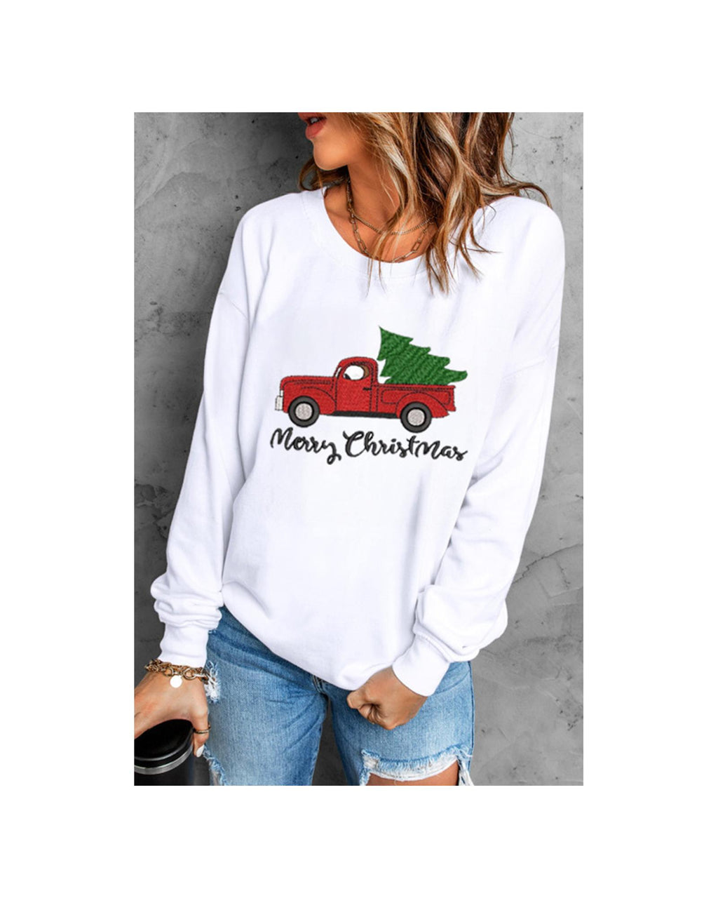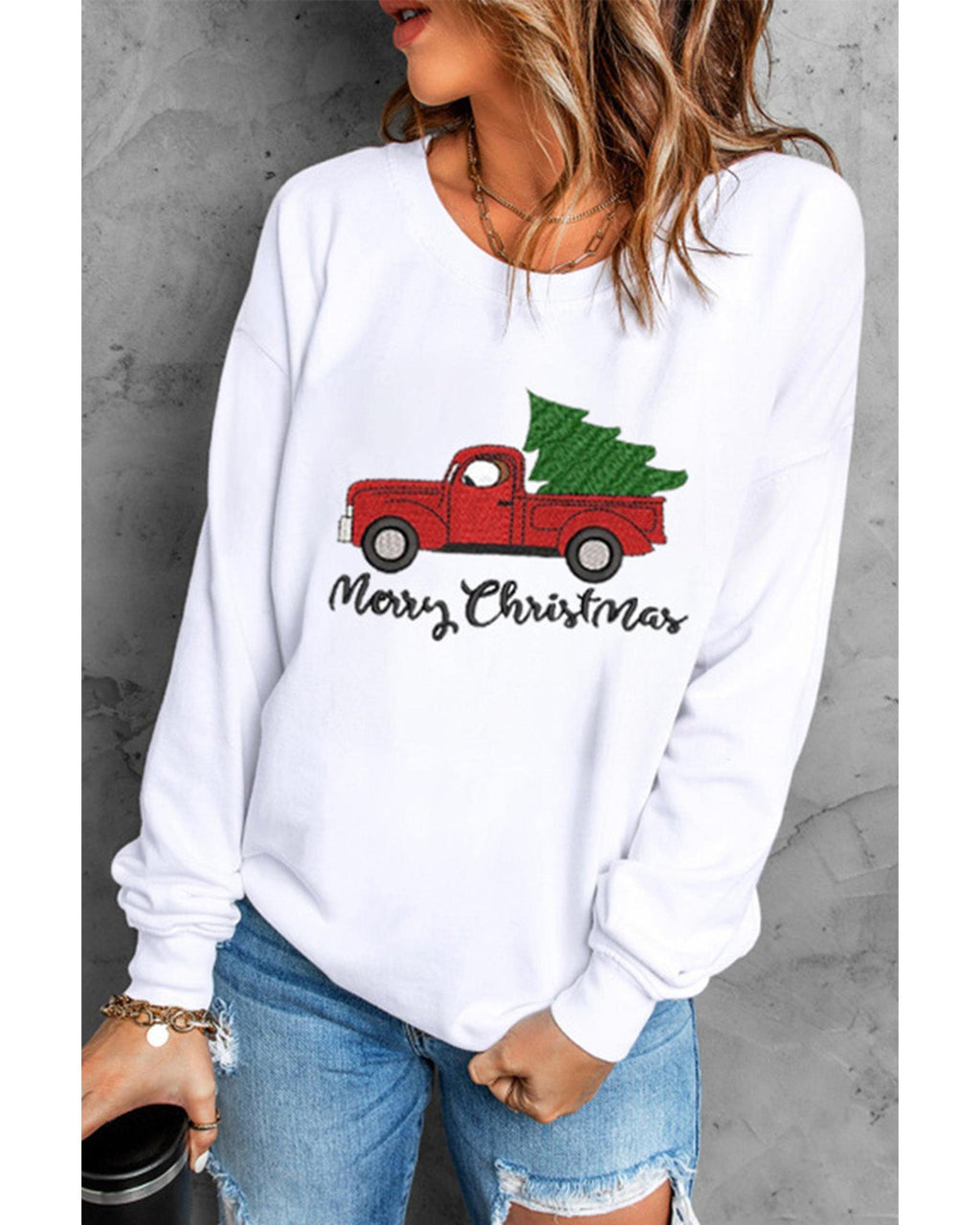 • Merry Christmas Truck Pattern Embroidered Pullover Sweatshirt