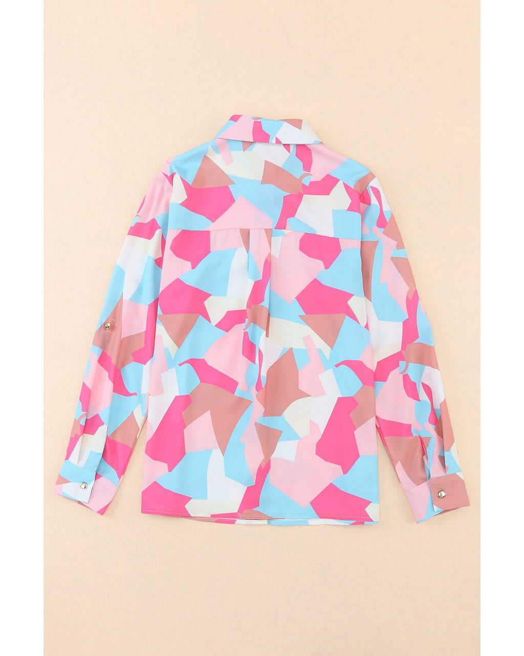 Azura Exchange Geometric Block Printed Roll Tab Sleeve Shirt - M
