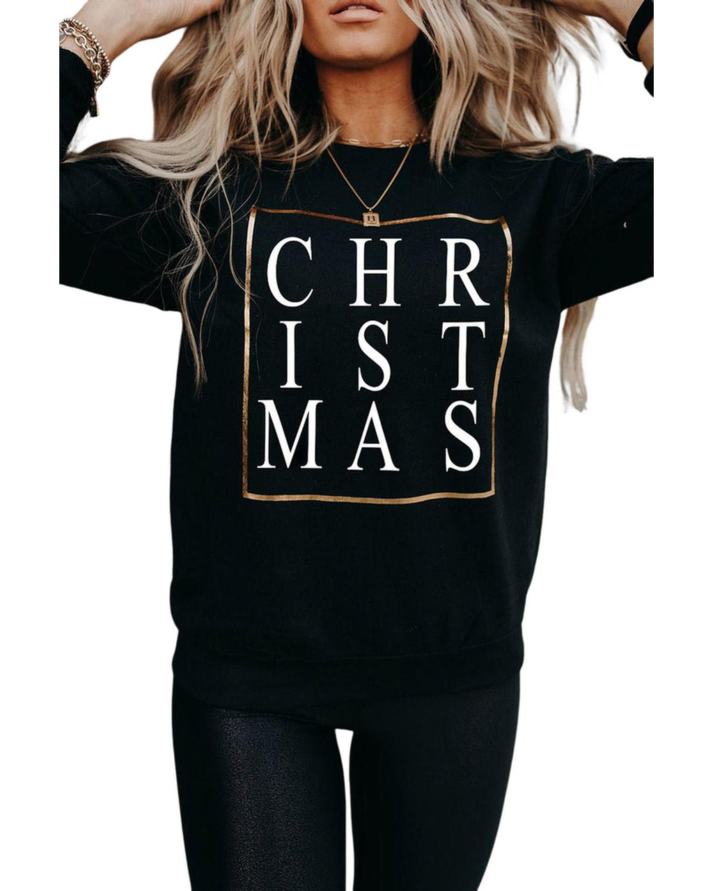- Stylish and festive Christmas Glitter Print Crew Neck Sweatshirt