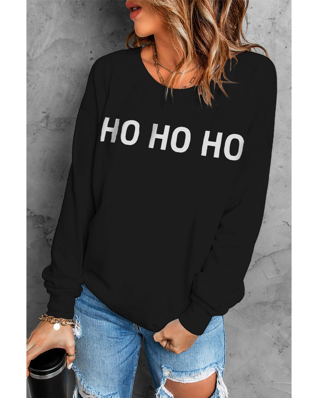 Azura Exchange Glitter Print Long Sleeve Pullover Sweatshirt - S