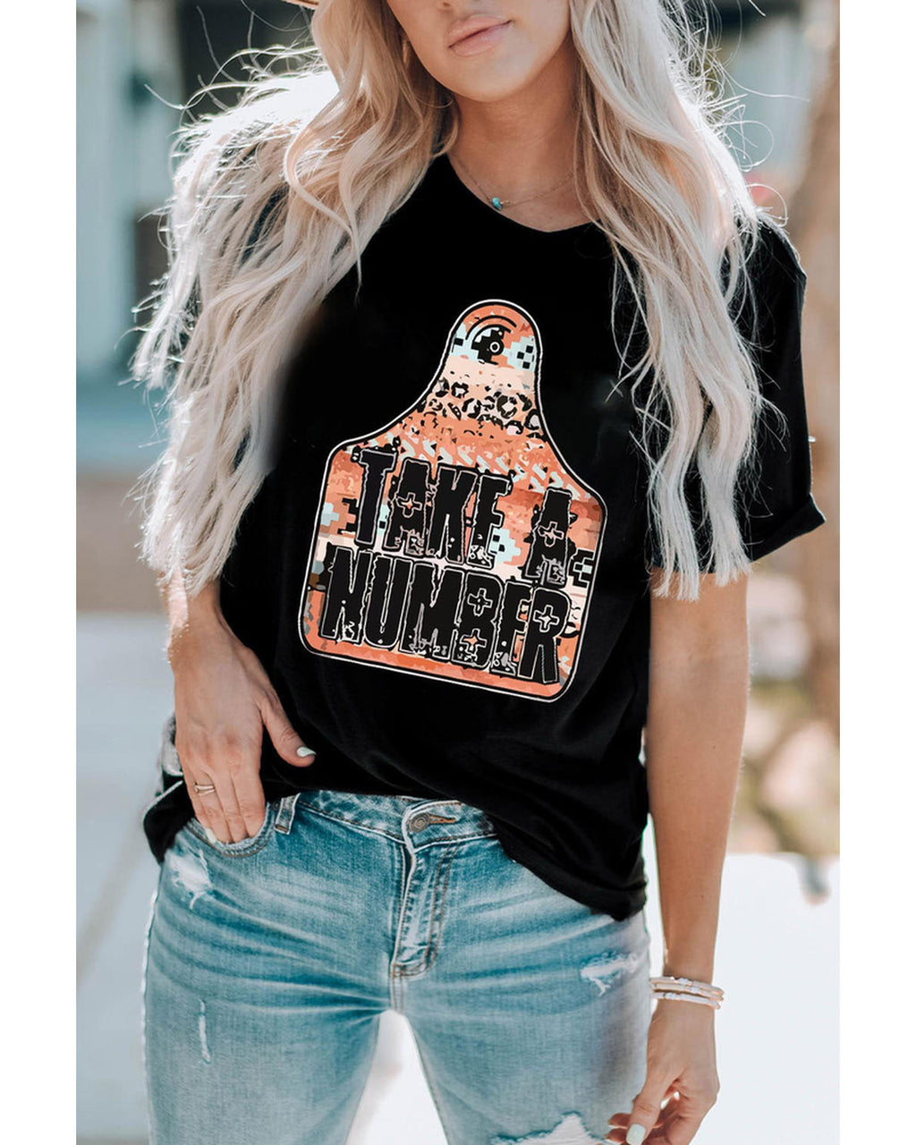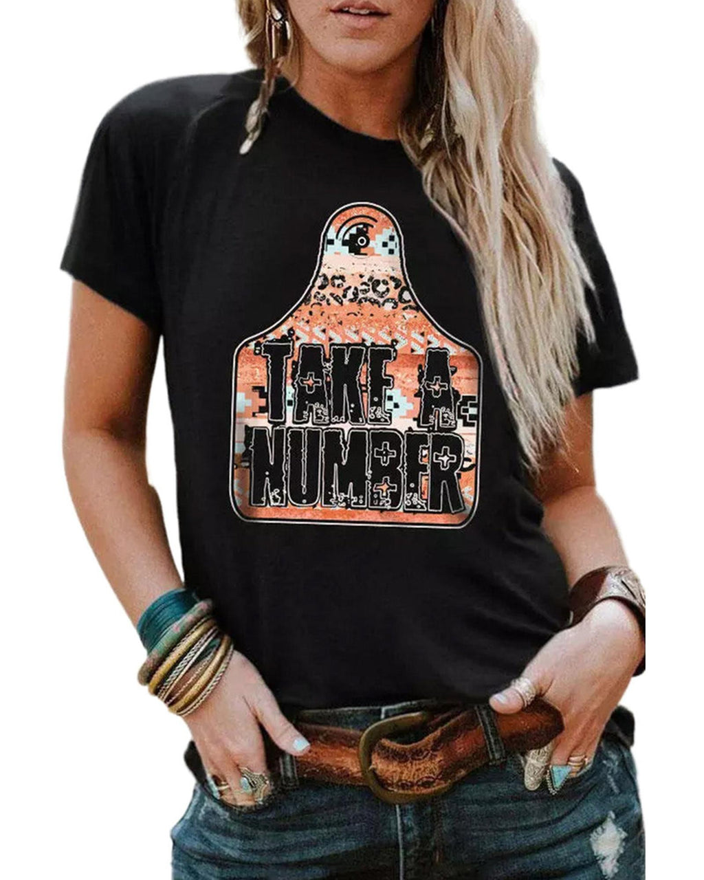 - Womens TAKE A NUMBER Graphic Crew Neck Tee