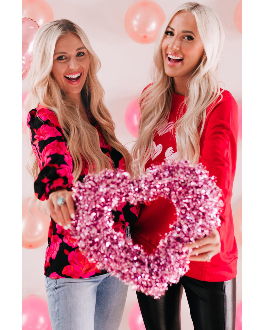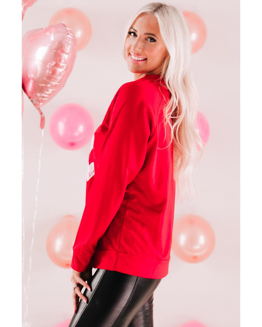 • Hearts Print Crewneck Long Sleeve Sweatshirt