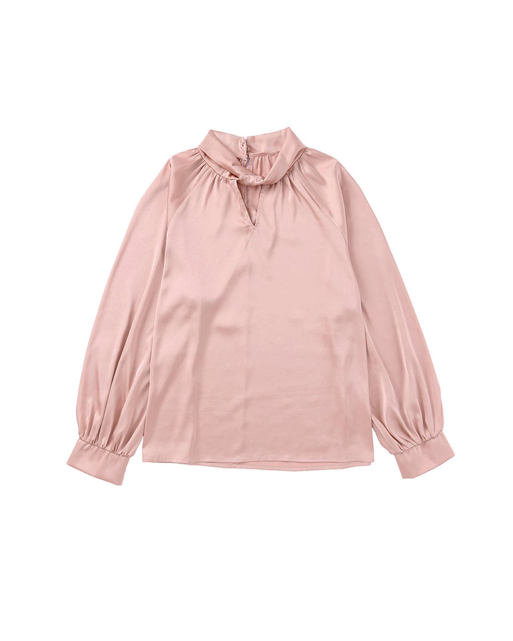 - Luxurious Twist High Neck Puff Sleeve Satin Blouse