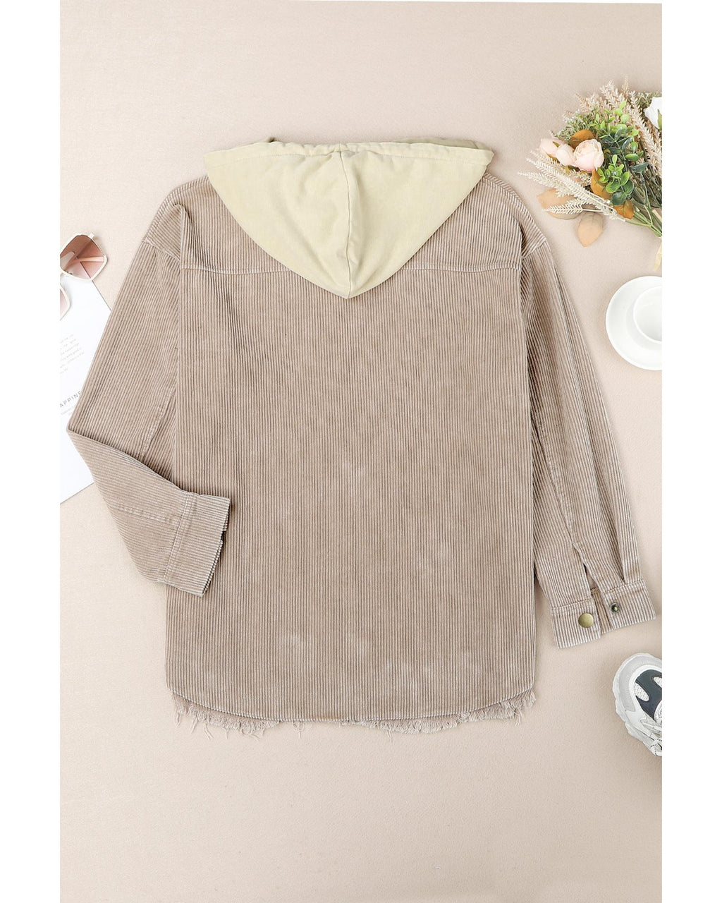 • Khaki Patchwork Hooded Corduroy Shacket