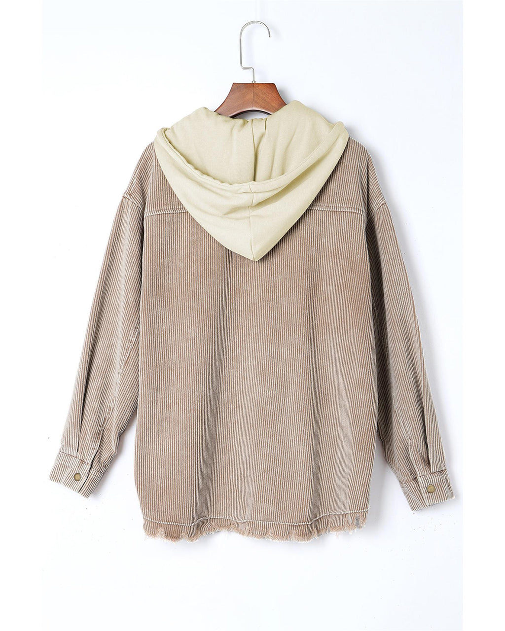Azura Exchange Khaki Patchwork Hooded Corduroy Shacket - XL