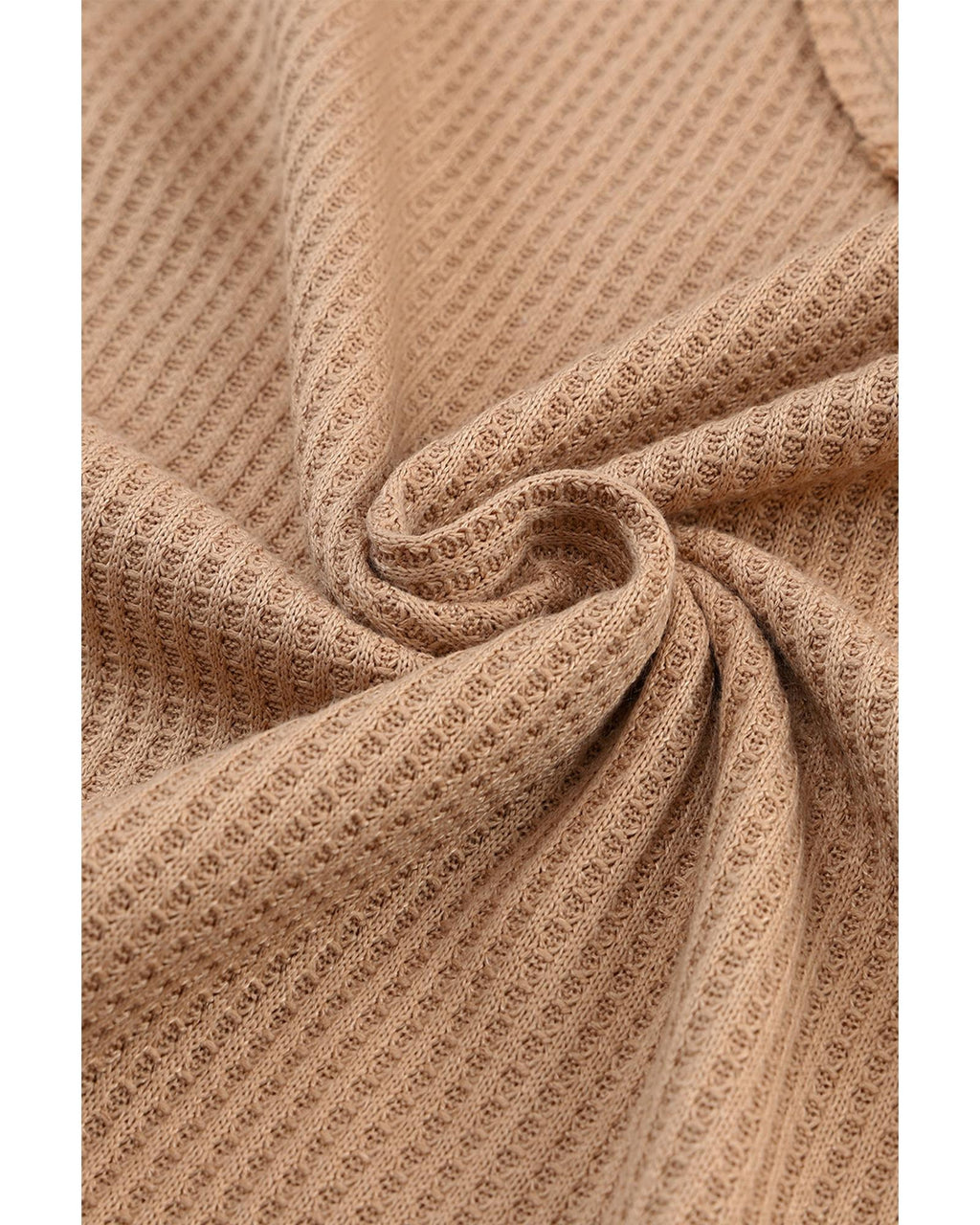Azura Exchange Lace Waffle Patchwork Strappy V Neck Long Sleeve Top - L