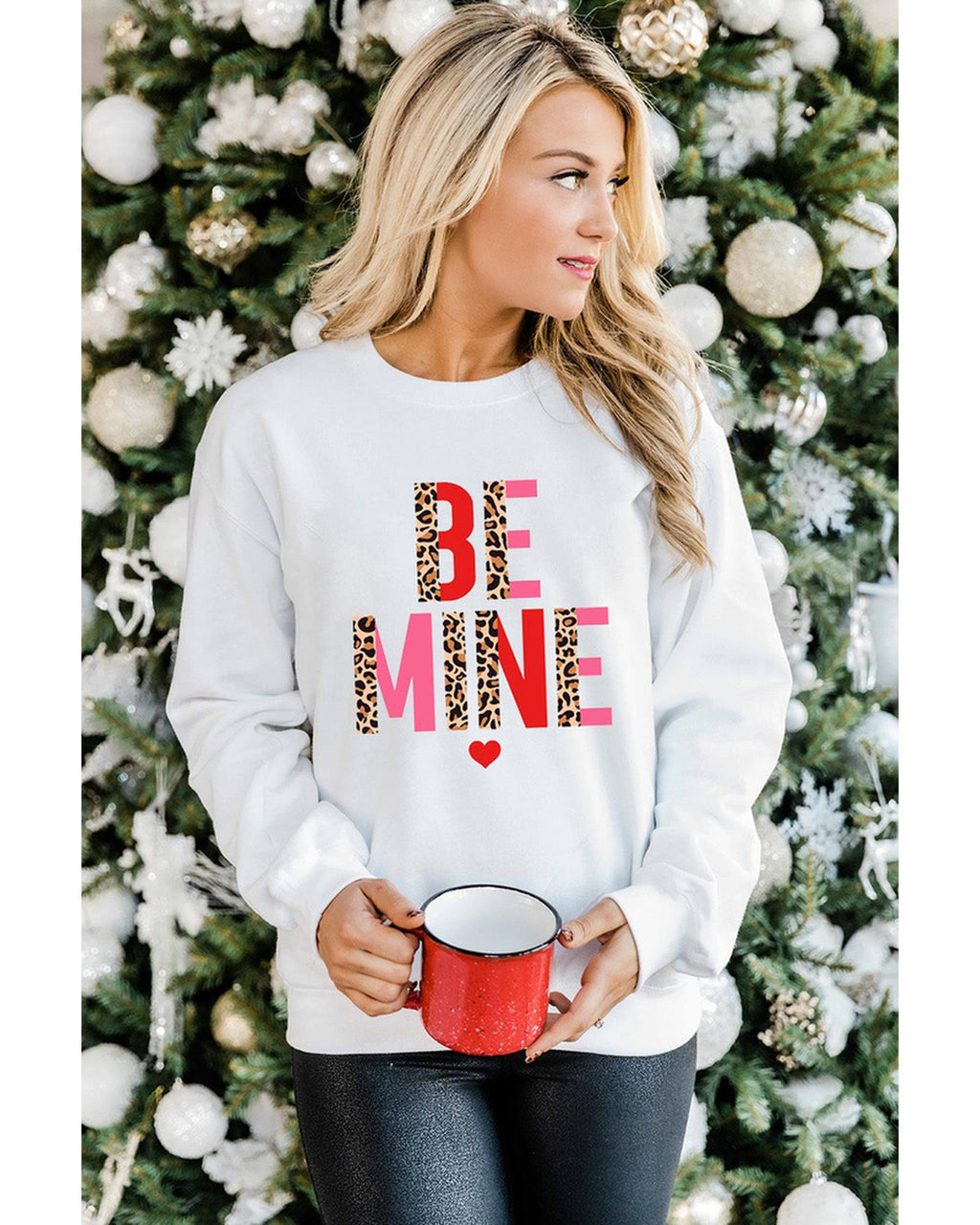 - Stylish and trendy BE MINE Leopard Heart Print Long Sleeve Sweatshirt