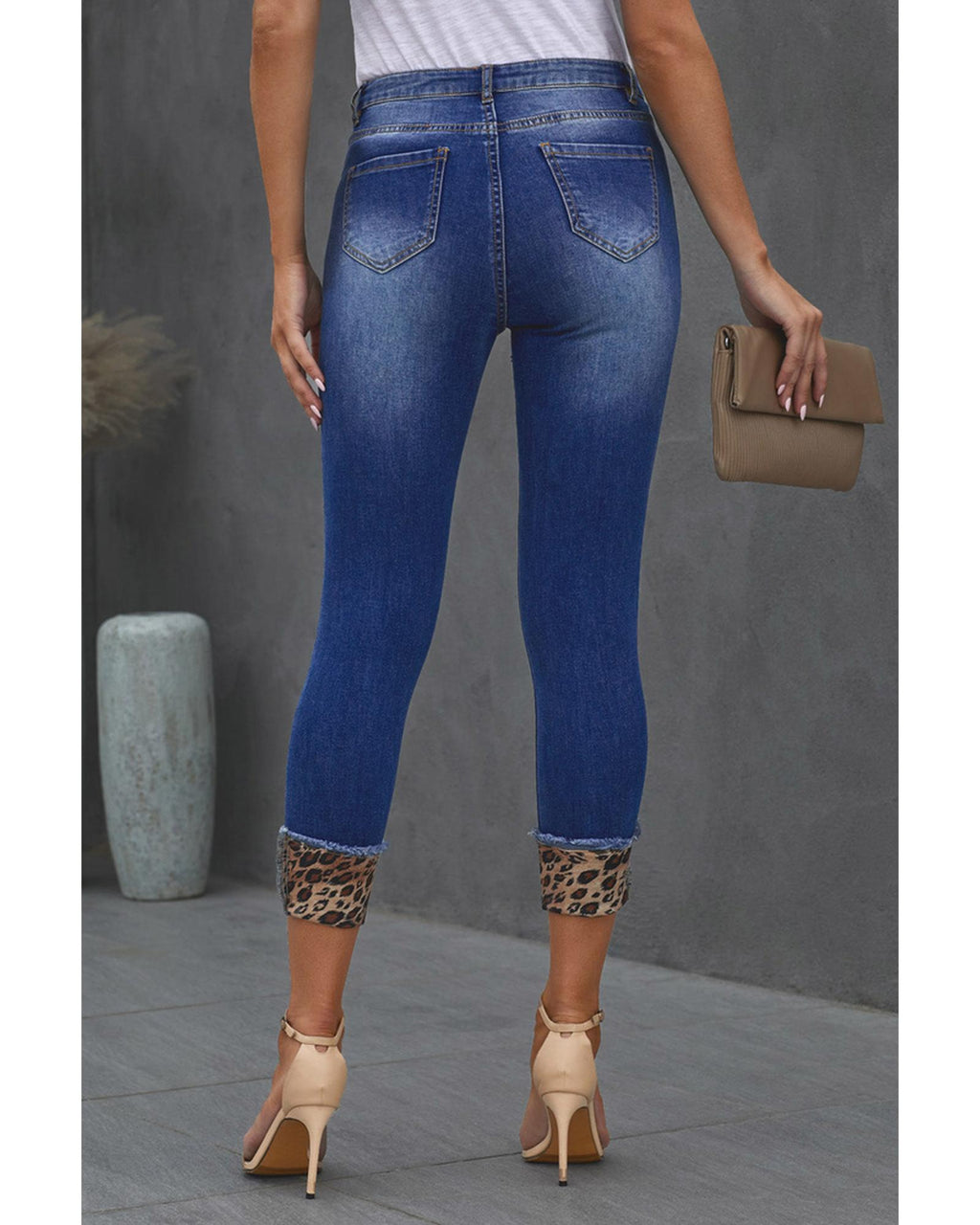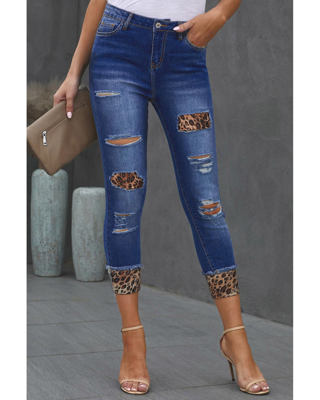 Azura Exchange Leopard Patches Distressed Skinny Jeans - S