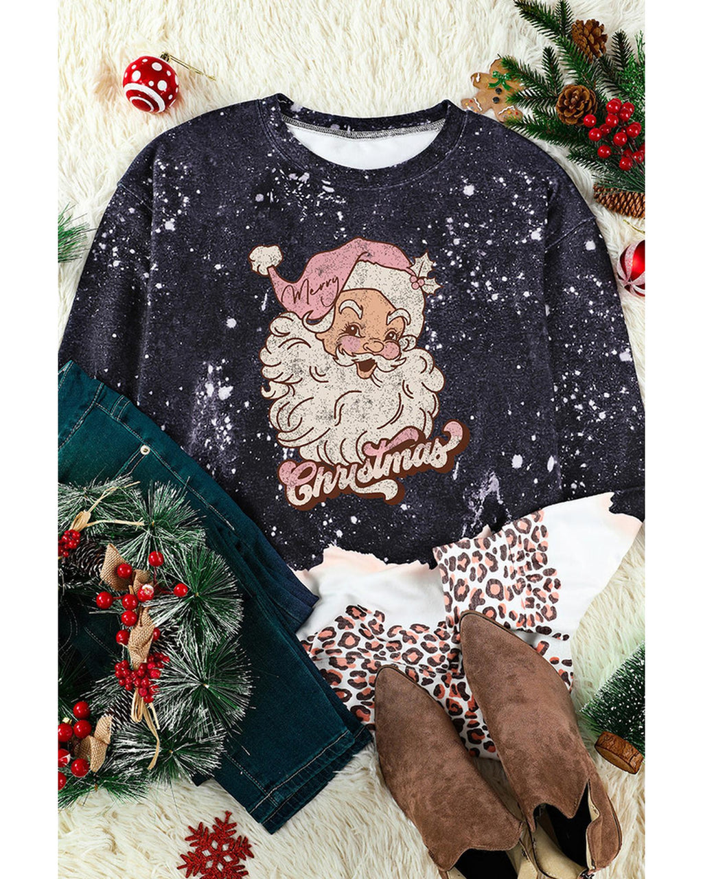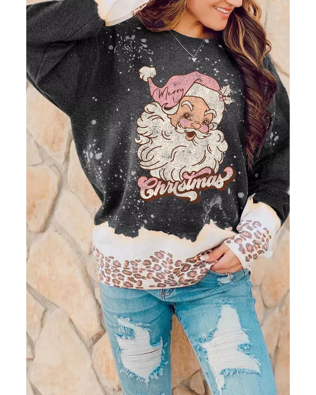 • Stylish Christmas Santa Clause Leopard Print Graphic Sweatshirt