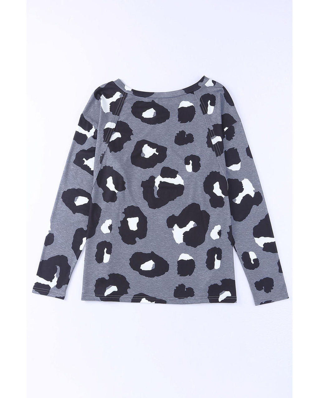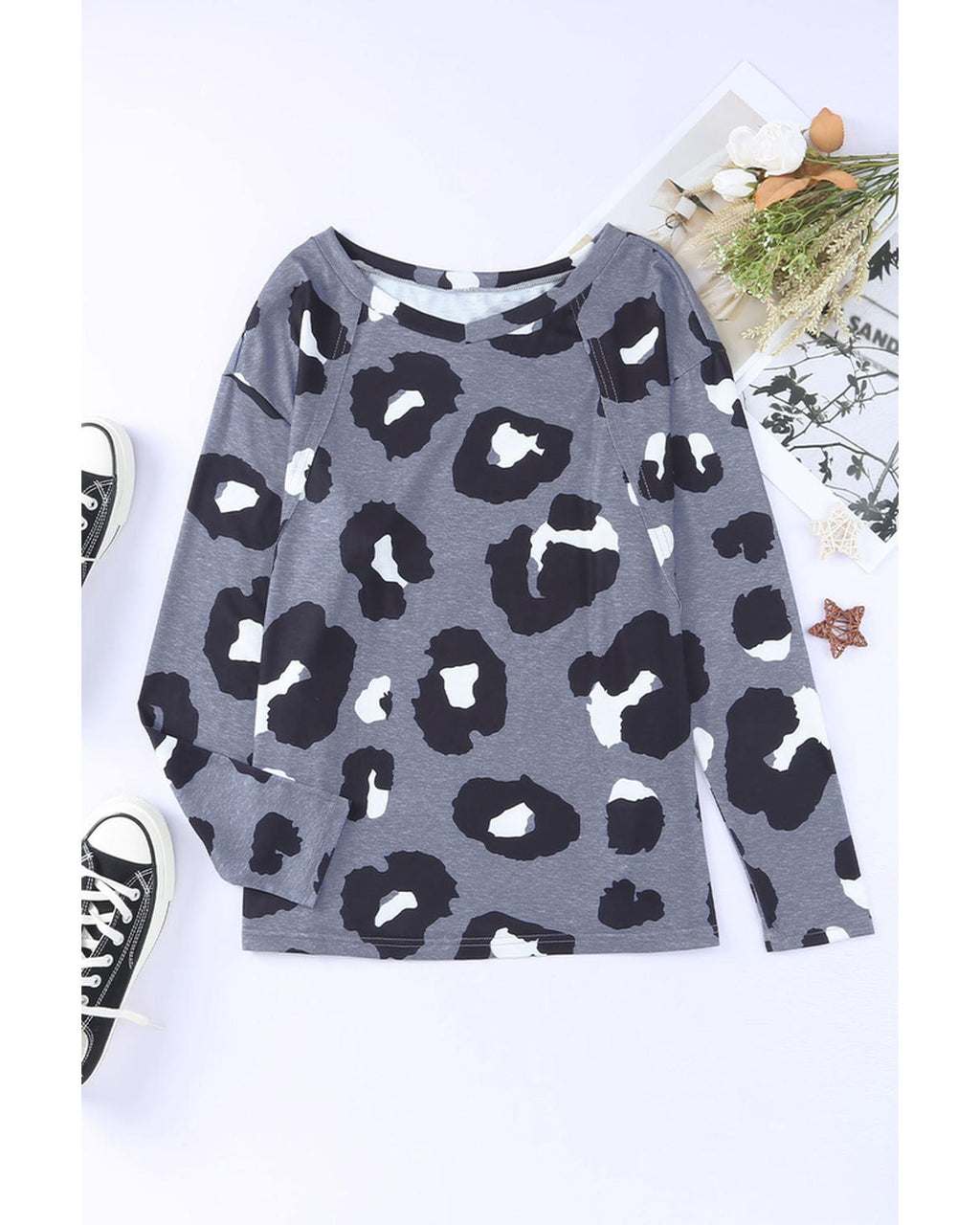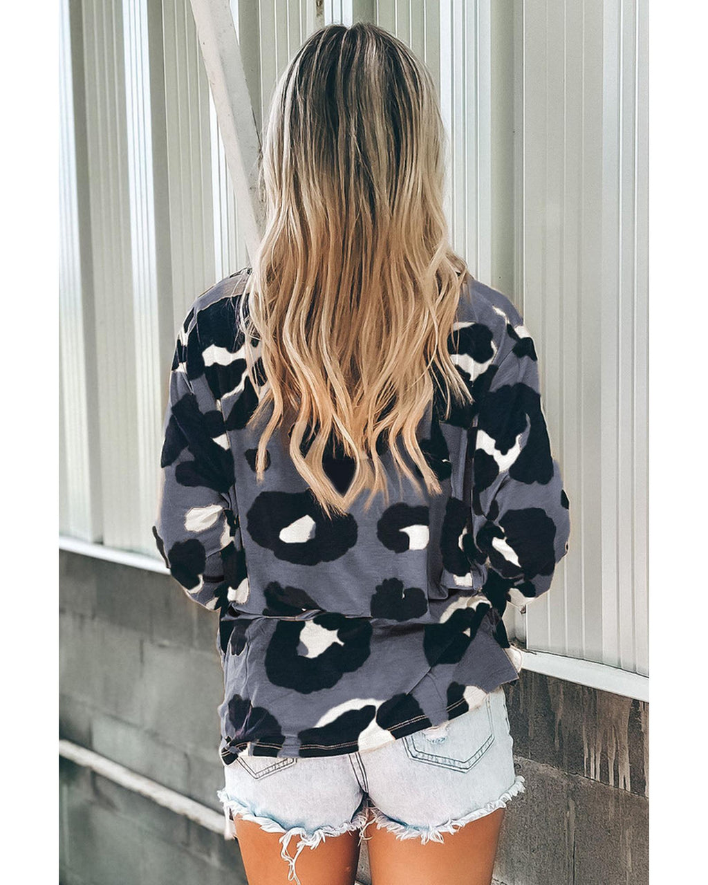 Azura Exchange Leopard Print Long Sleeve Loose Top - M
