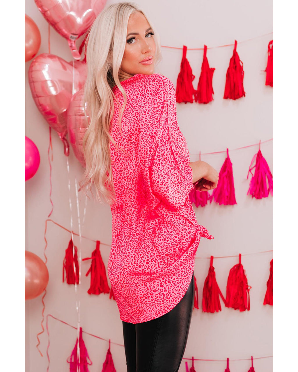 Azura Exchange Leopard Print Oversized V Neck Top - L
