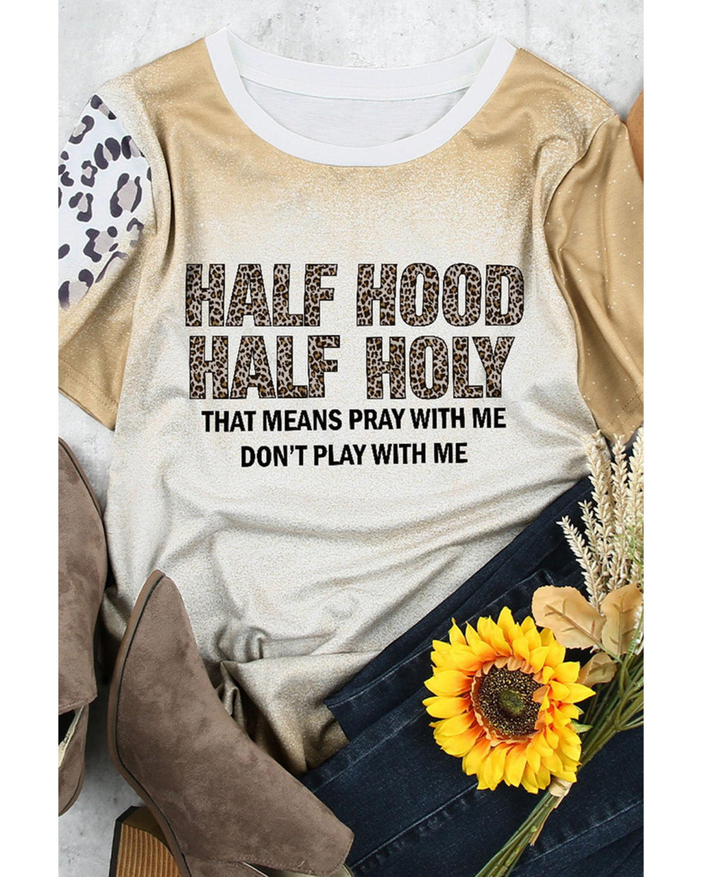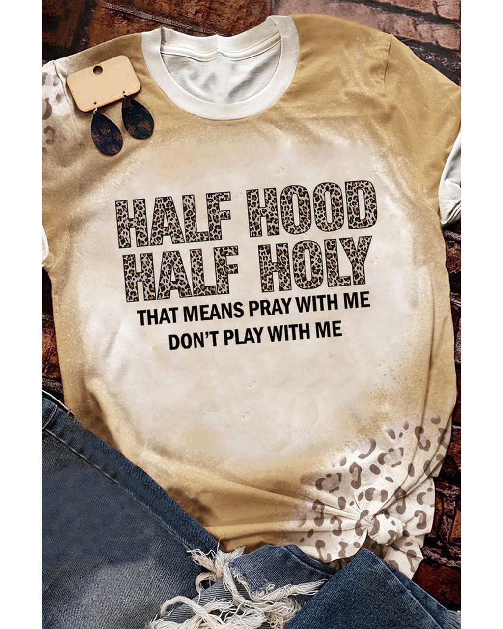 - Khaki Half Hood Half Holy Leopard Short Sleeve T-Shirt