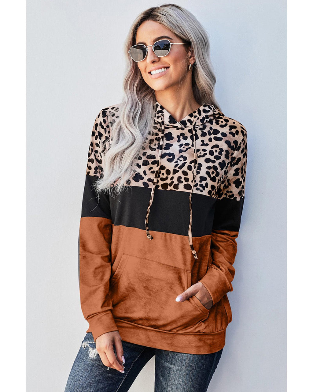 - Leopard Tie Dye Colorblock Hoodie