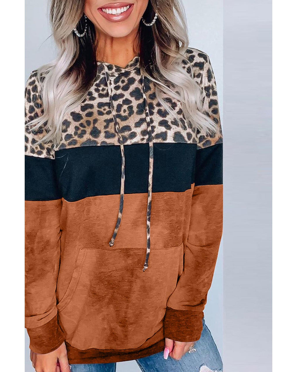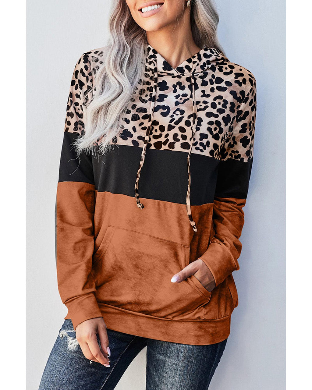 - Leopard Tie Dye Colorblock Hoodie