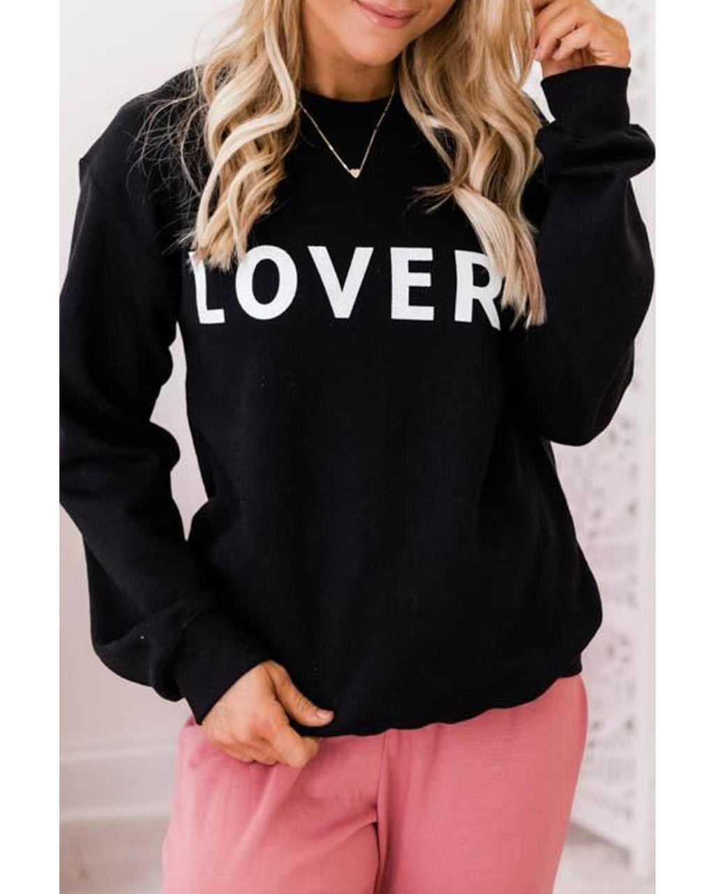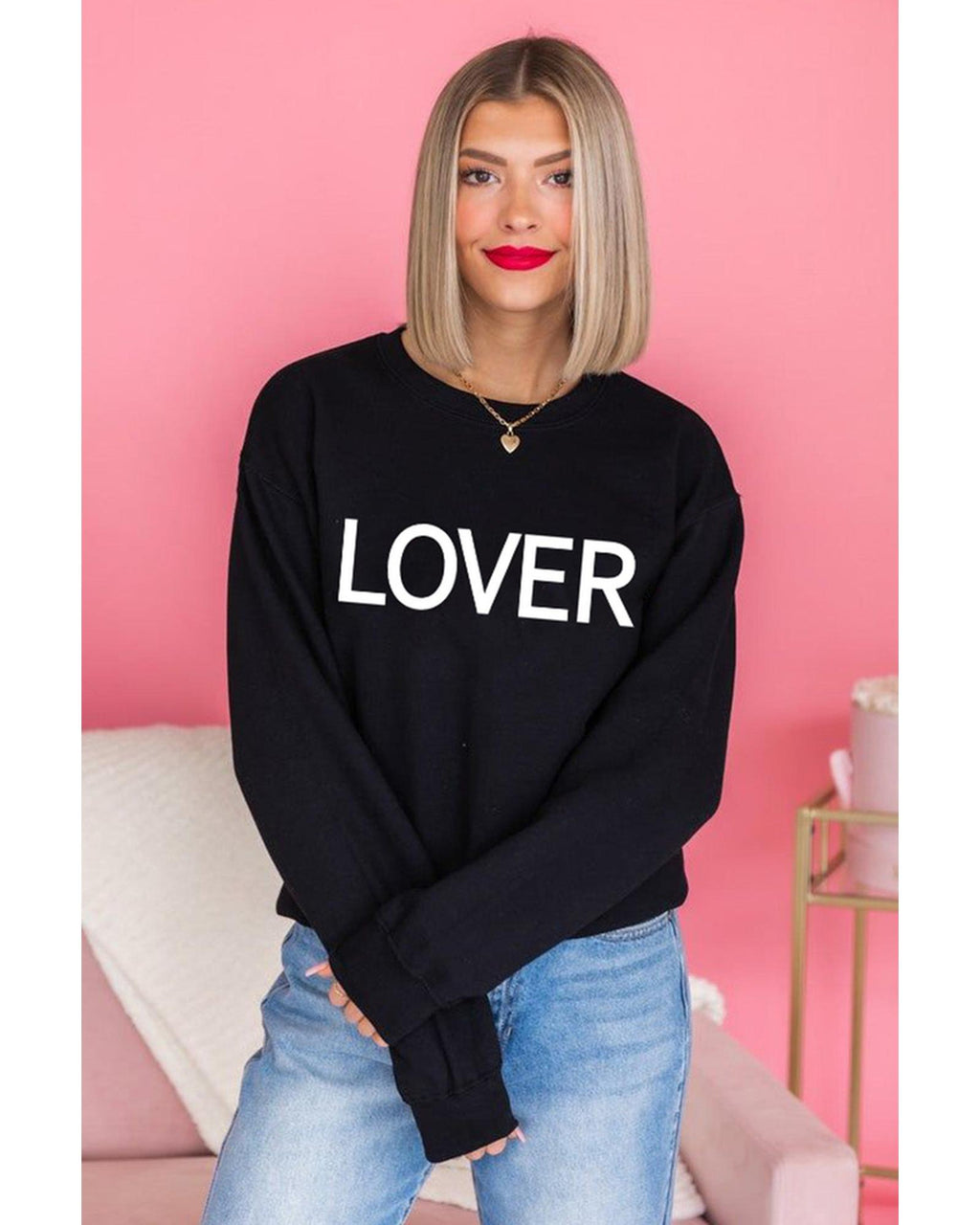 Azura Exchange Lover Crew Neck Sweatshirt with Letter Print - M