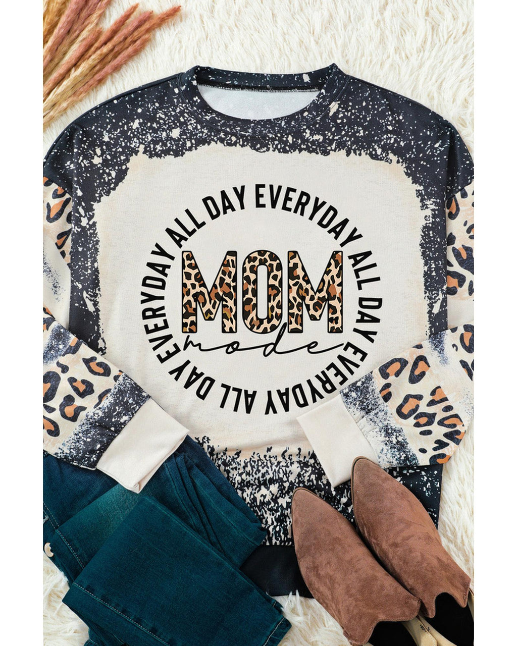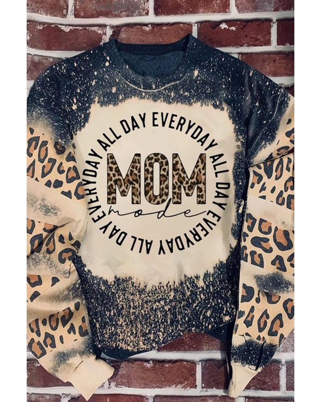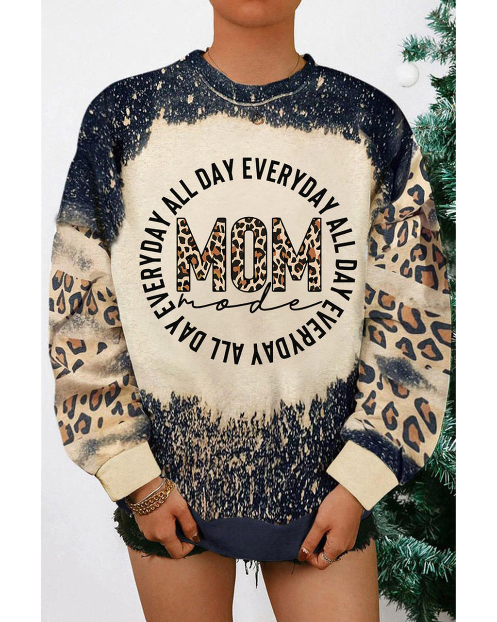 Azura Exchange MOM Letter Graphic Print Leopard Bleached Sweatshirt - 2XL