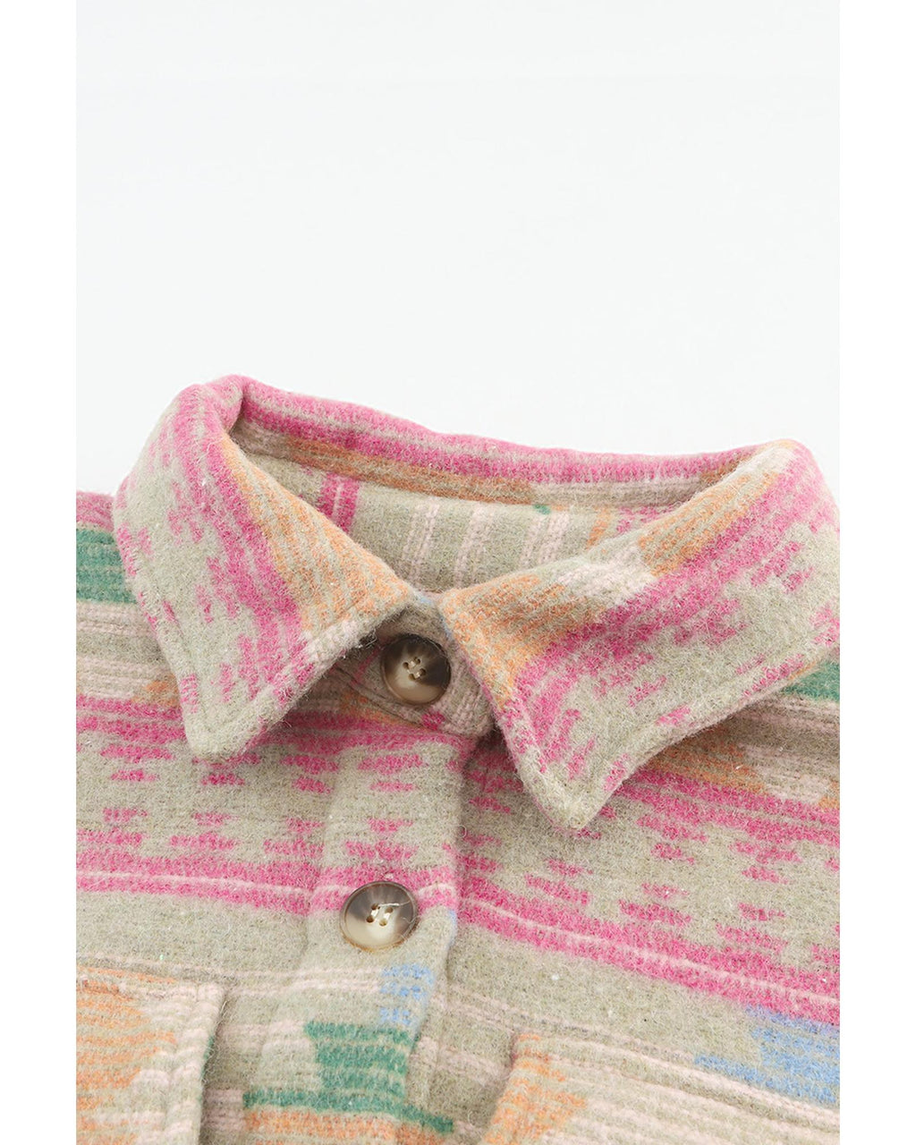 Azura Exchange Multicolor Western Aztec Print Button Flap Pocket Shacket - L
