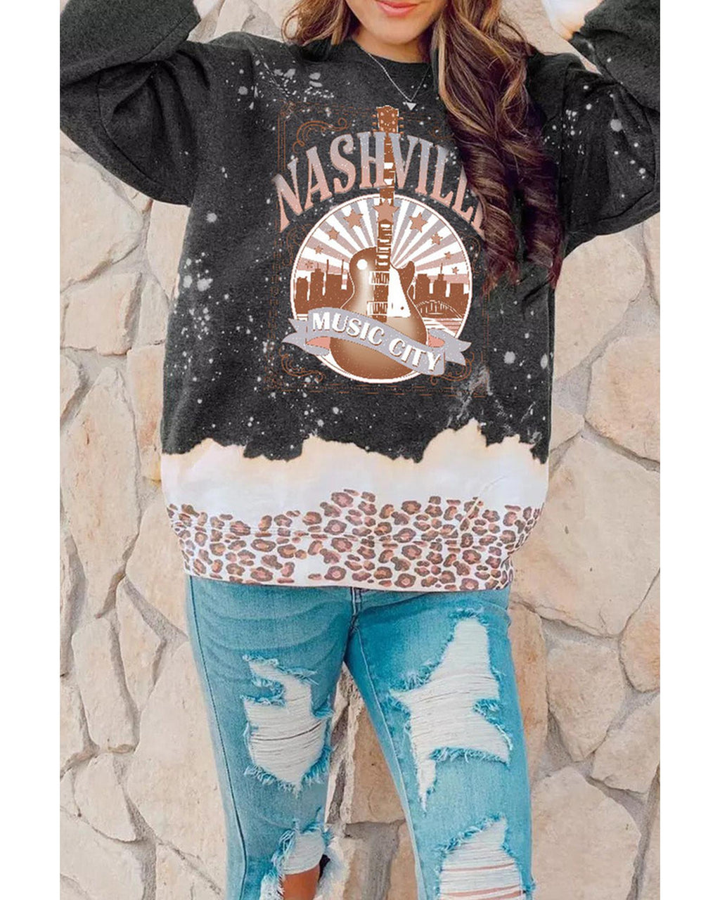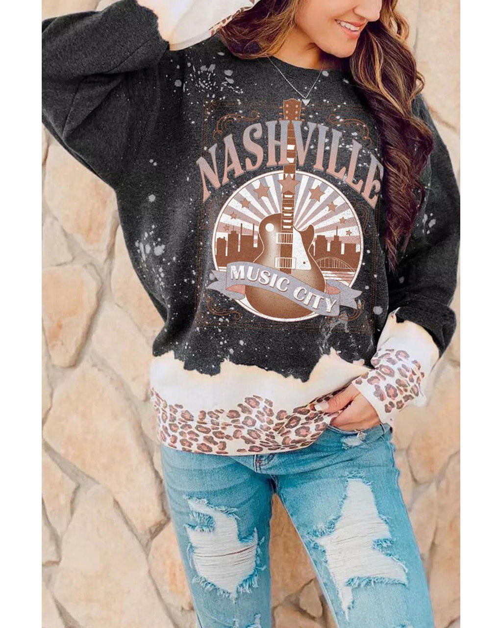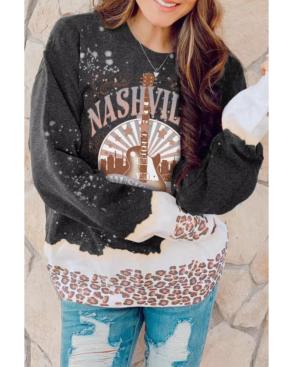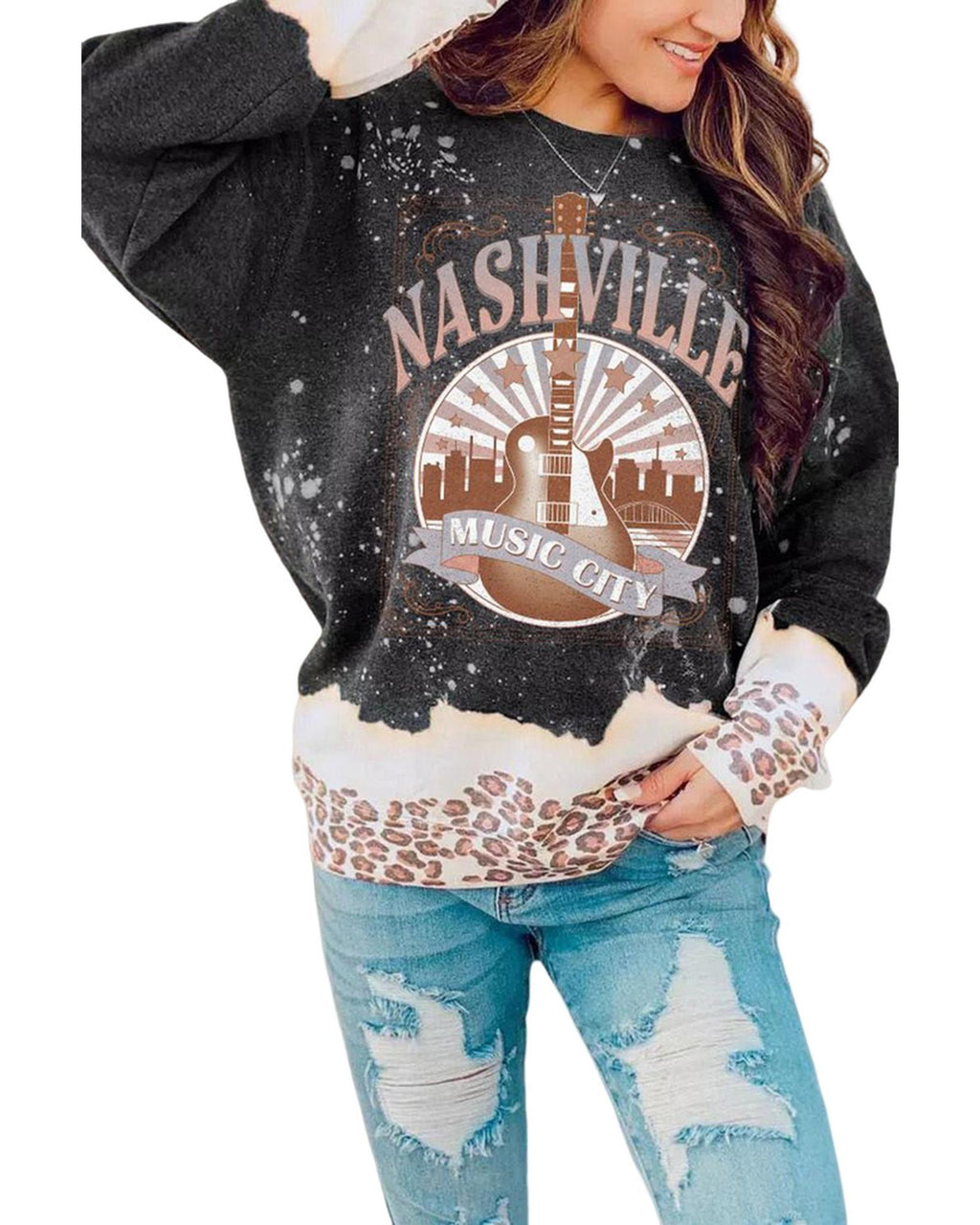 - NASHVILLE Music City Guitar Leopard Color Block Sweatshirt