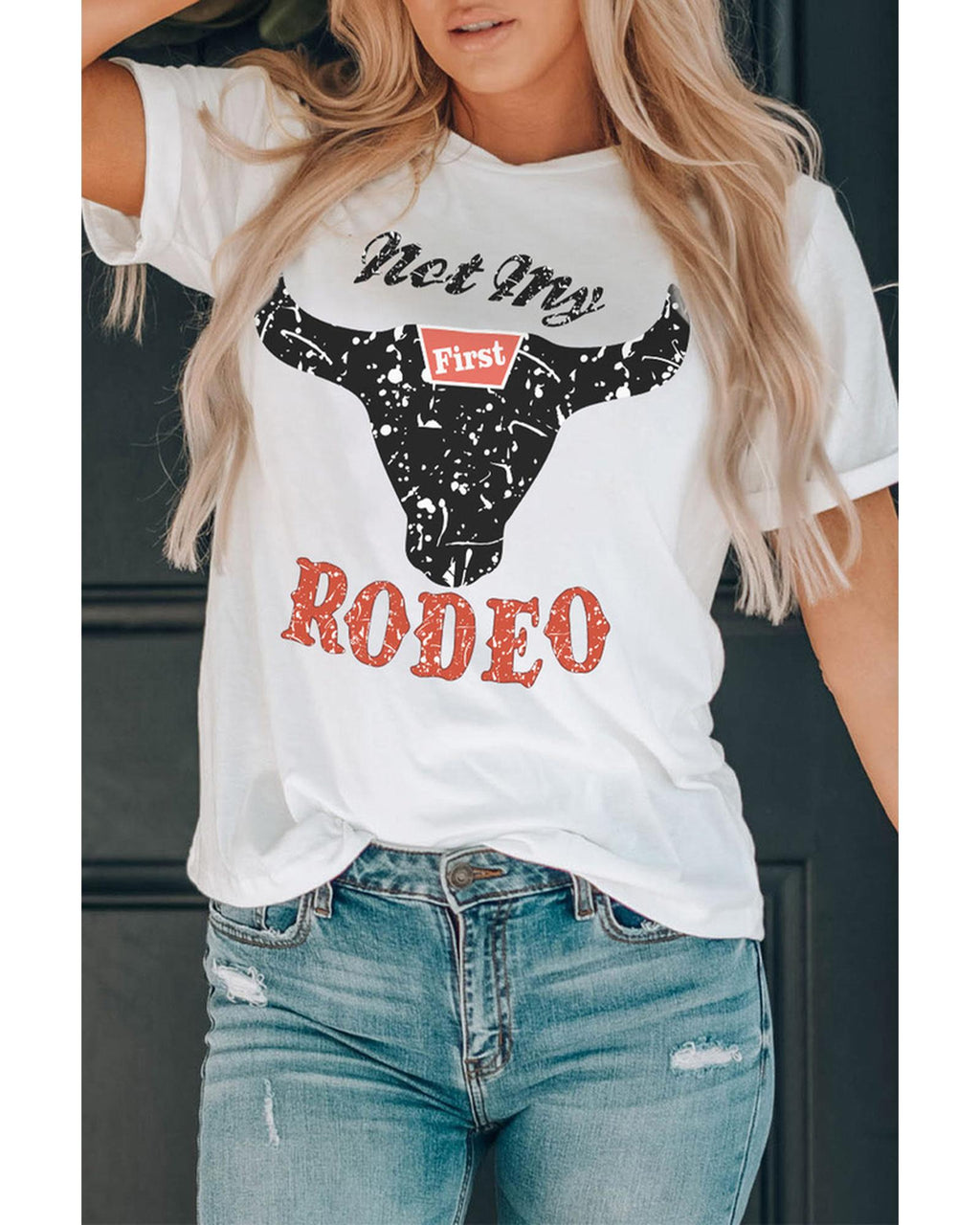 - Womens Not My Rodeo Bull Graphic T Shirt