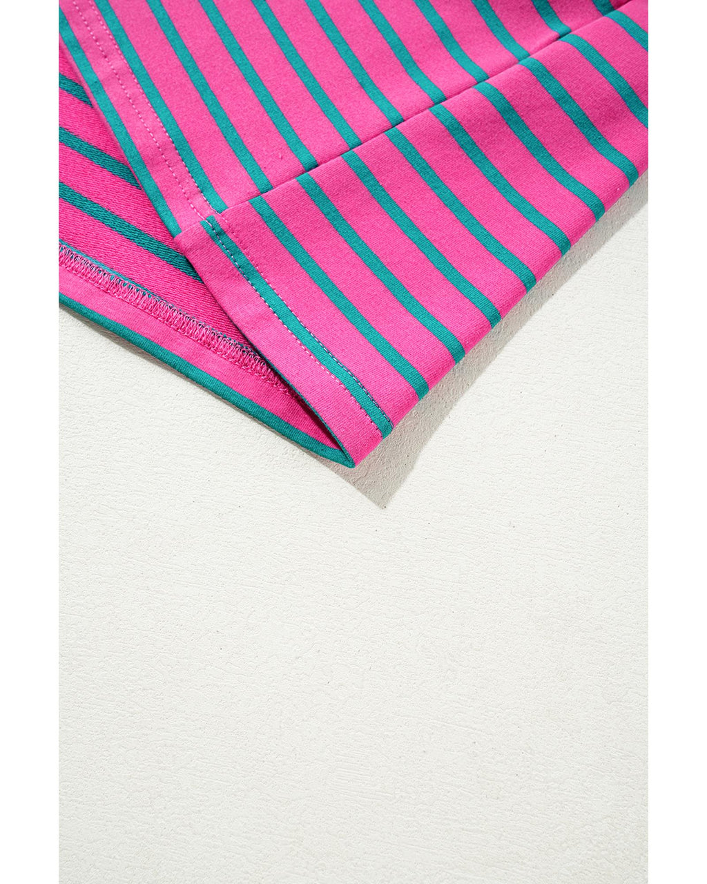 Azura Exchange Pink Stripe Collared V Neck Puff Sleeve T Shirt Dress - XL