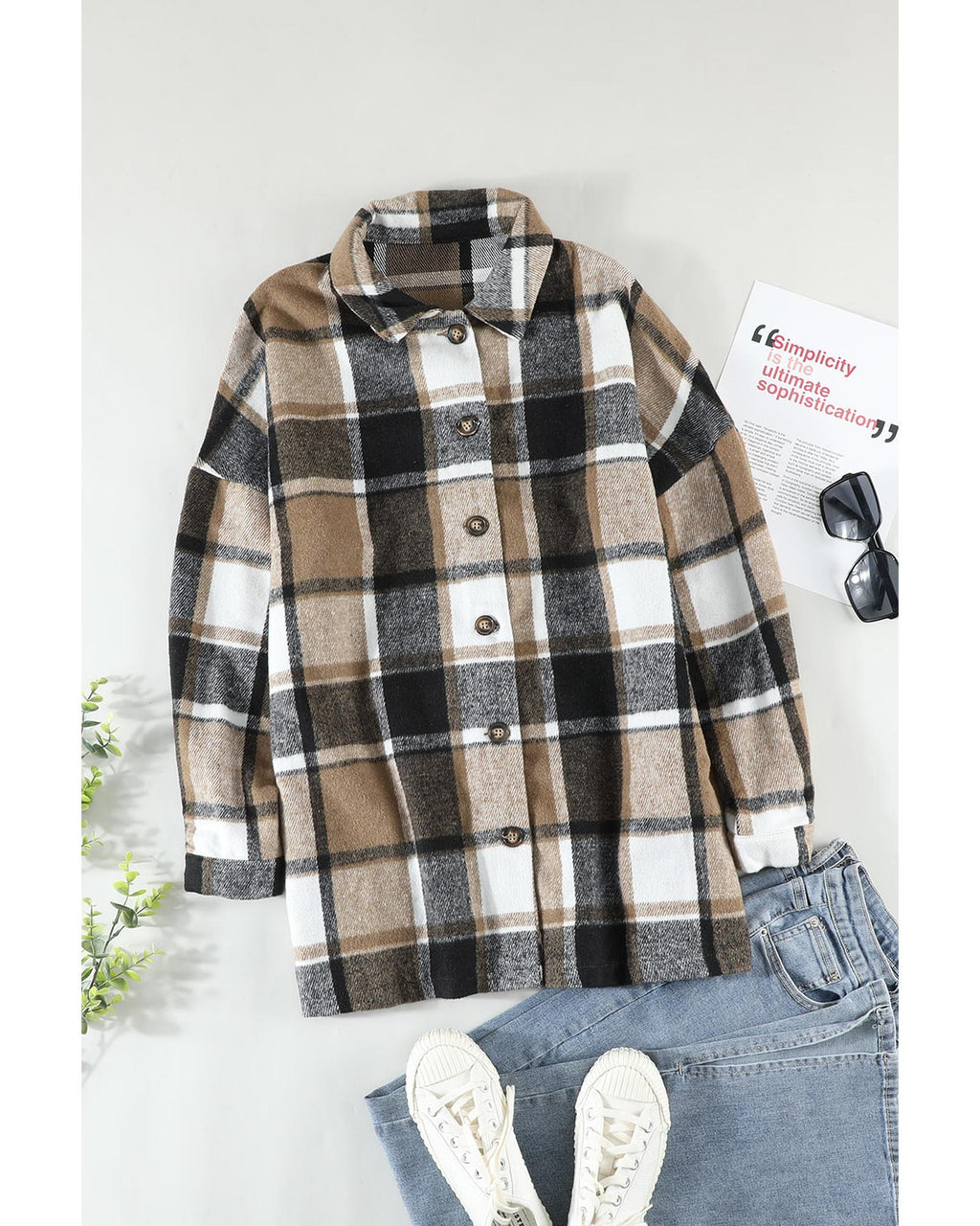 • Stylish and versatile plaid print shirt jacket Designed for women Buttoned closure for a secure and comfortable fit Made from high