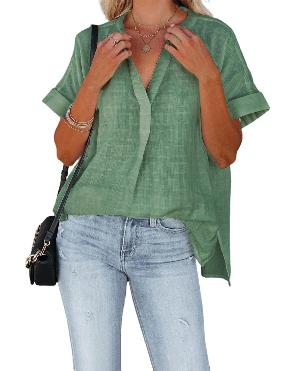 - V-neckline adds a feminine touch