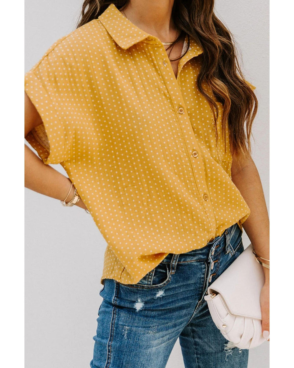 - Stylish Rolled Short Sleeve Polka Dot Print Shirt