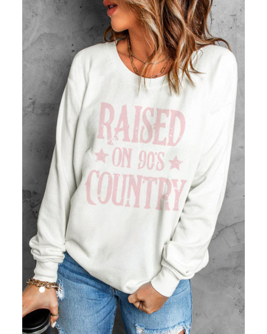 - Beige RAISED ON 90S COUNTRY Print Pullover Sweatshirt